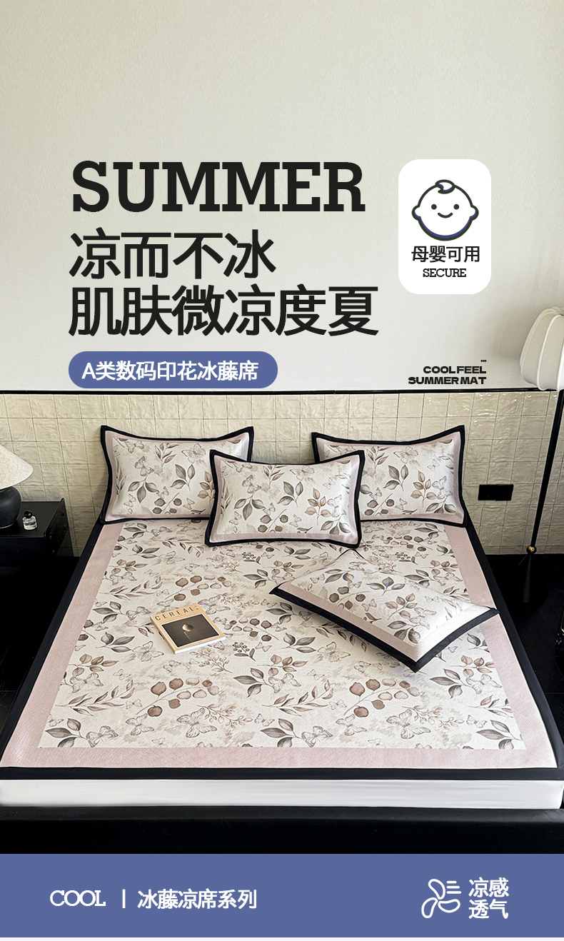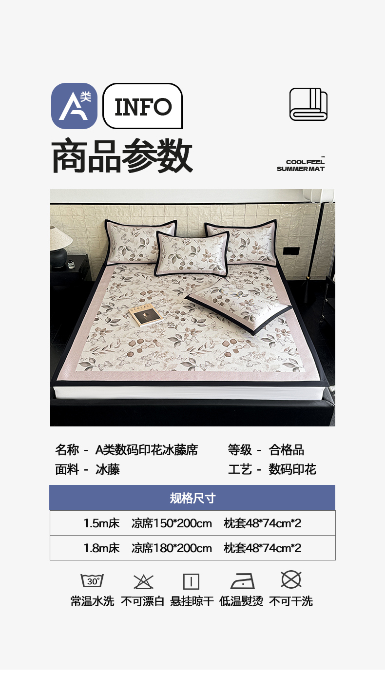 商品名称:懒猫家纺 2026新款800D数码印花大版冰藤凉席 伊丽雅