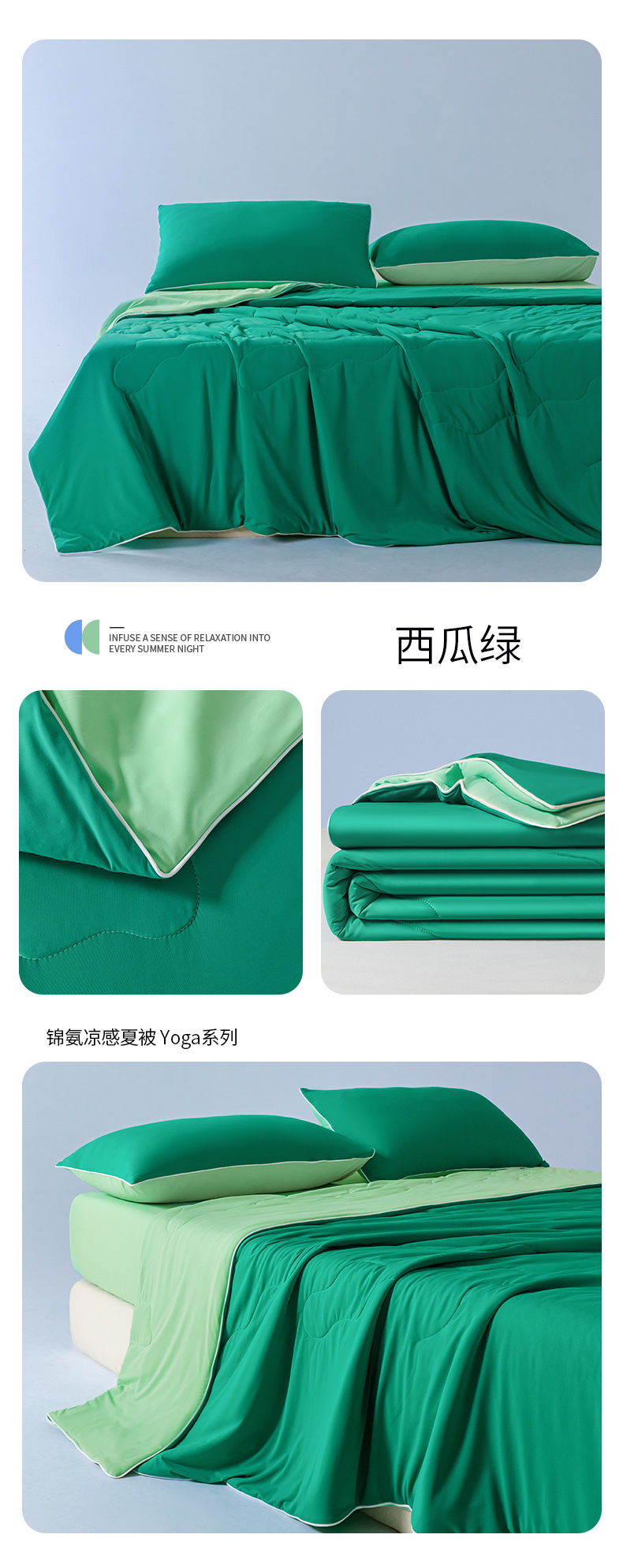 (总)鑫琪莱家纺 2026新款锦氨凉感Yoga系列夏被,海洋蓝,梦境粉,山茶绿,绅士灰,深睡蓝,西瓜绿