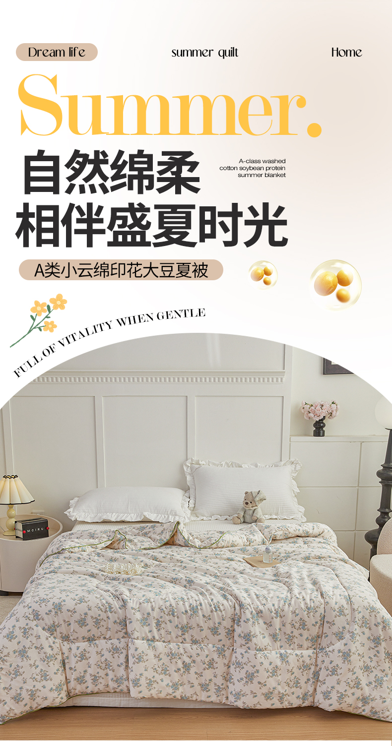 商品名称:尊妙被业 2026新款小奶芙大豆夏被夏凉被空调被 花屿间