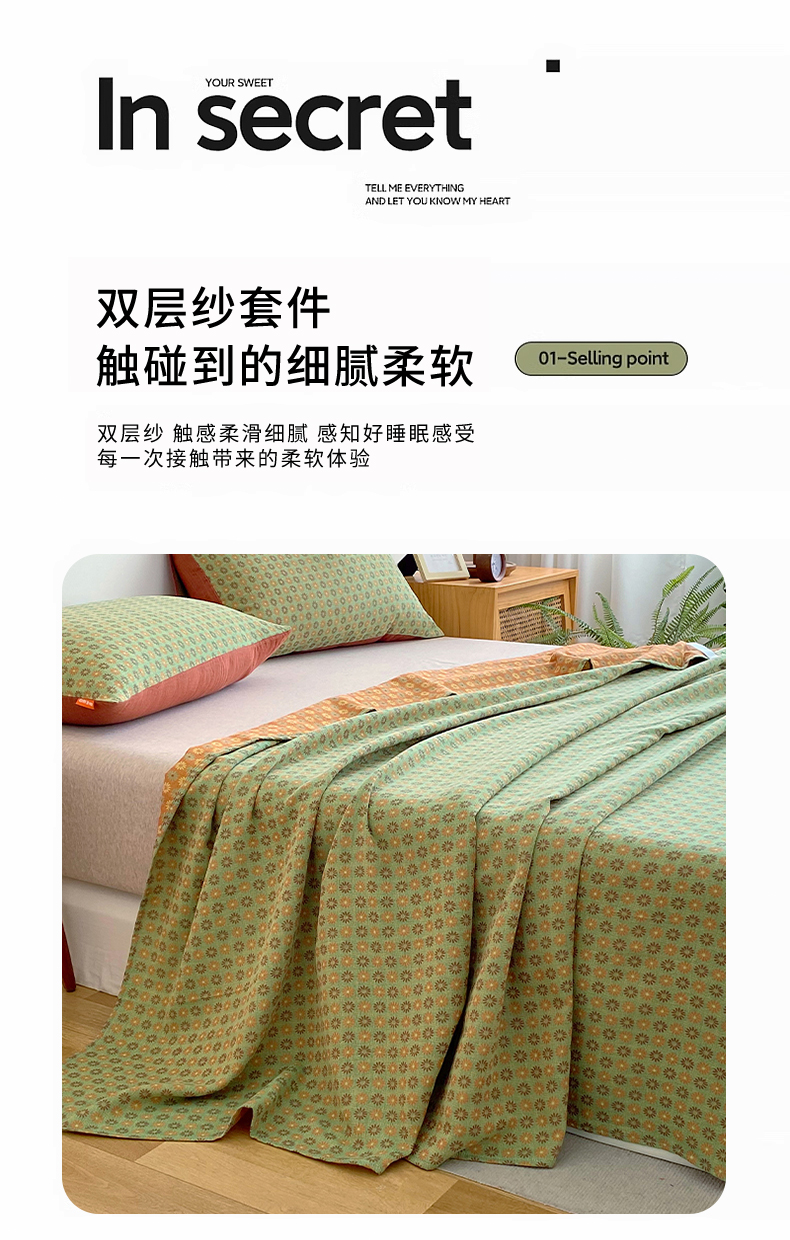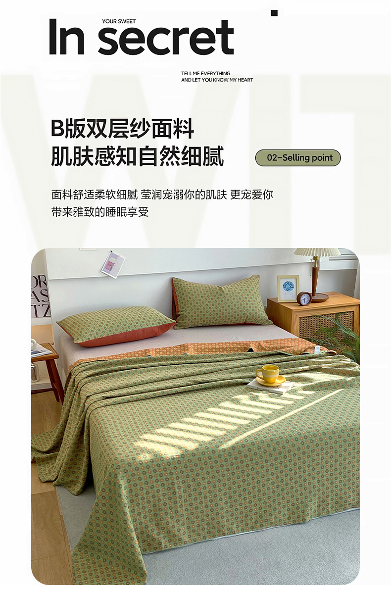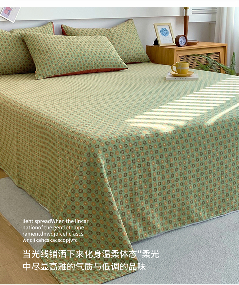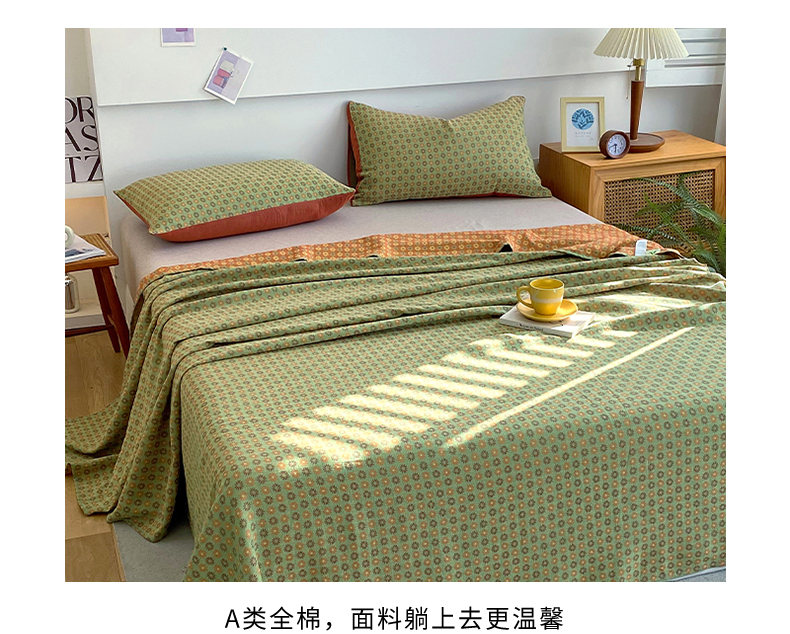 • 91家纺网 家纺一手货源 找家纺 春皖家纺 2026新款全棉纯棉拉链款双层纱床单单床单床单单件 夏洛克绿
