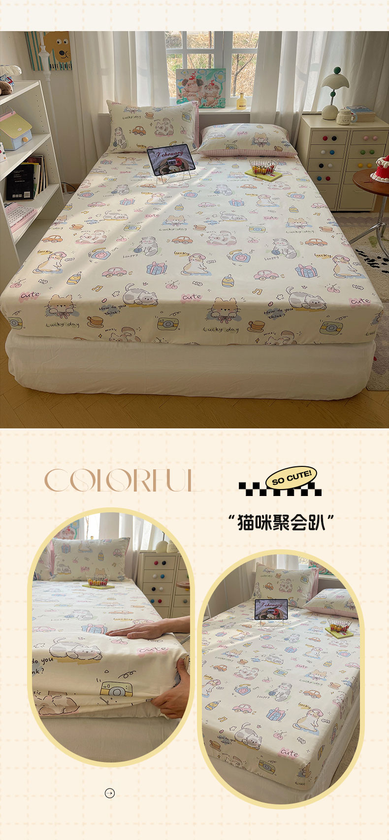 六巷胡同 2026新款40支全棉13070INS卡通单品床笠 组合叠拍图