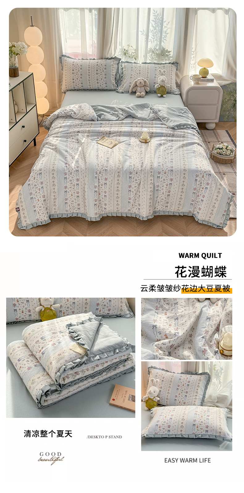 商品名称:(总)丽美人家纺 2026新款皱皱纱花边夏被被夏凉被空调被