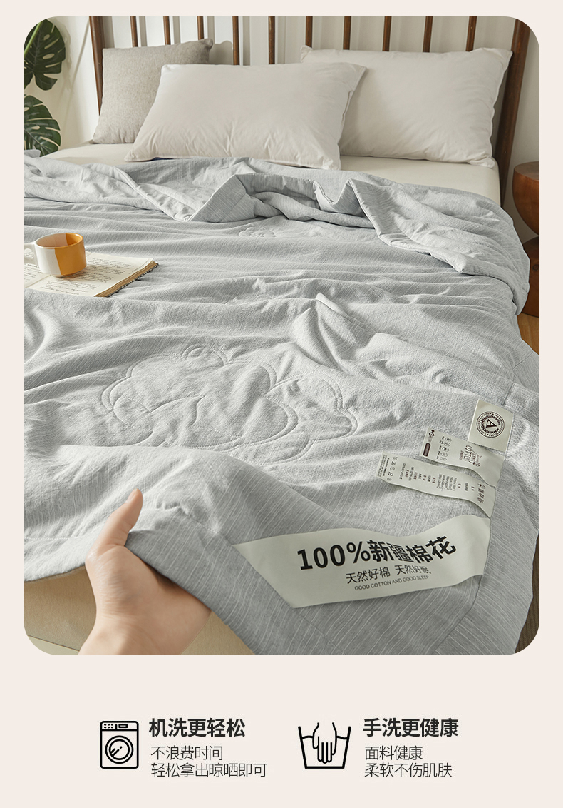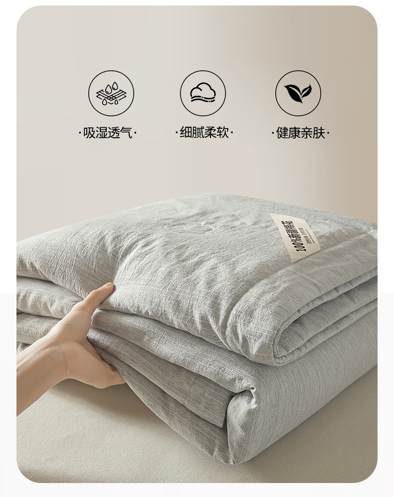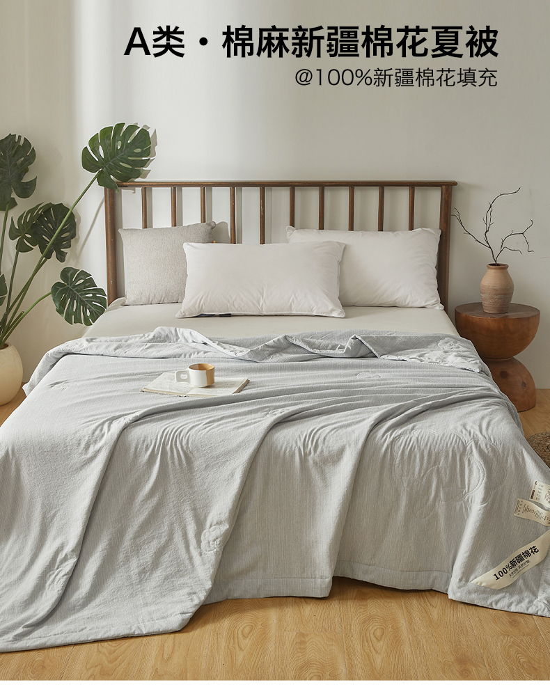 被子 > 夏被 > 招财星家纺 2026新款纯色棉麻100%新疆棉花夏被棉花被夏凉被空调被(带质检报告买家秀) 棉麻-灰色