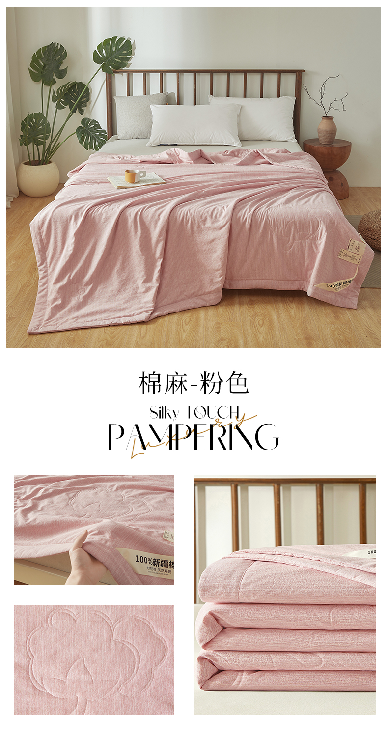 (总)招财星家纺 2026新款纯色棉麻100%新疆棉花夏被棉花被夏凉被空调被(带质检报告买家秀),棉麻-绿色,棉麻- 紫色,棉麻-粉色,棉麻-灰色,棉麻-米杏,棉麻-浅咖,组合图仅做展示不可下单