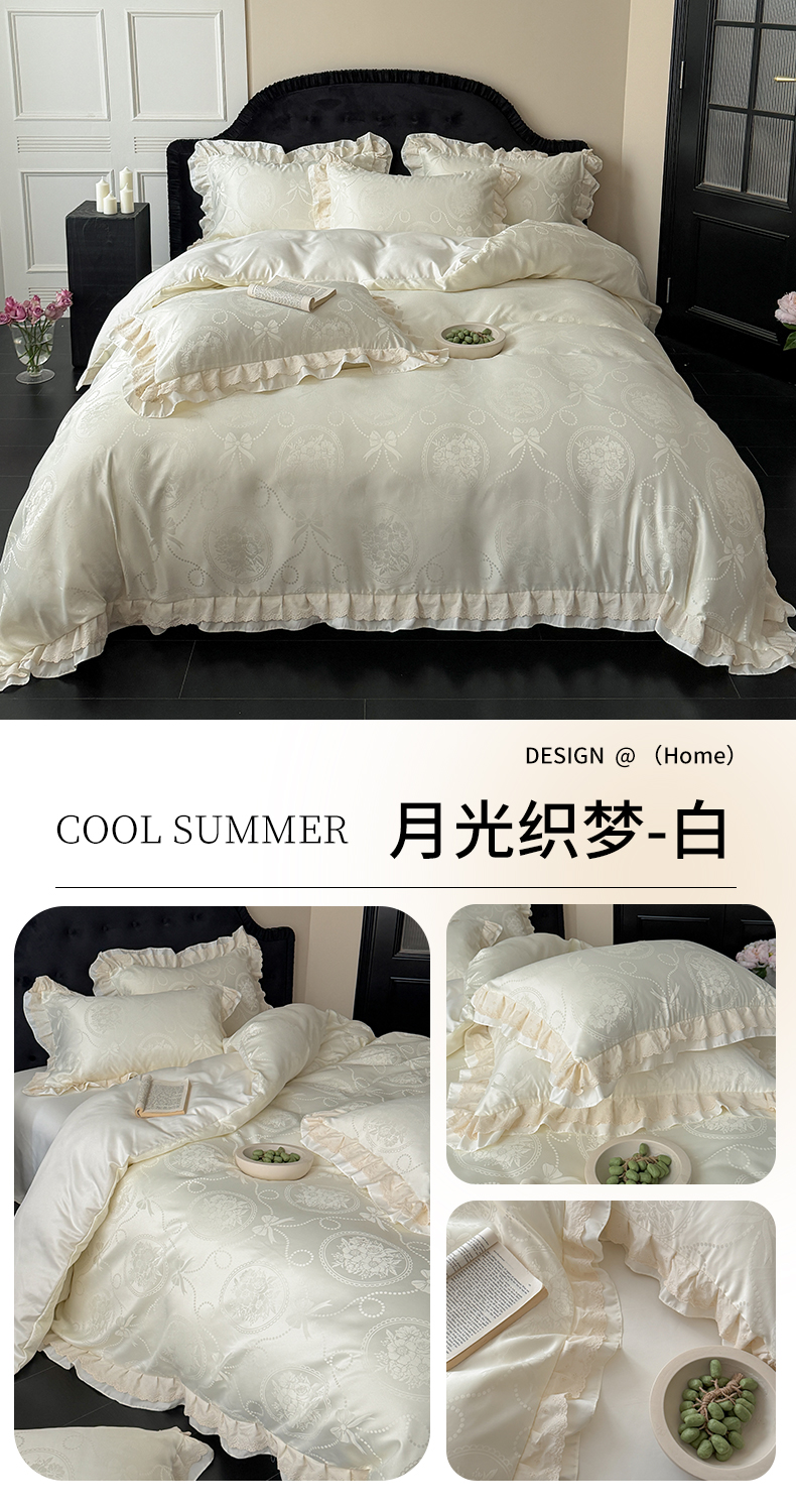 (总)优悦生活馆 2026新款花边款冰丝四件套-月光织梦,月光织梦-白,月光织梦-粉,月光织梦-蓝