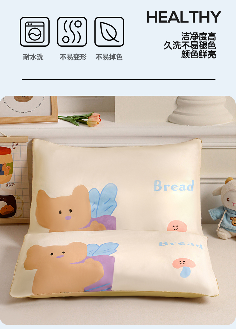 布凡家居 2026新款A类60支莱赛尔天丝枕套 枕套单件 萝卜熊