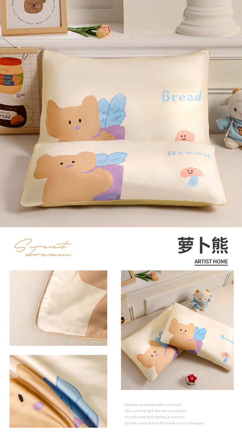 商品名称:布凡家居 2026新款A类60支莱赛尔天丝枕套 枕套单件 萝卜熊