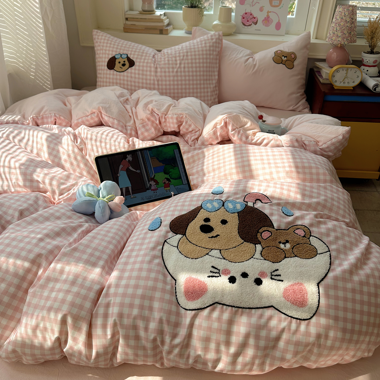 当前位置: 91家纺网 > 商品网购 > 床品套件 > 四件套 > 其它四件套 > 顾里家纺 2026春夏新款ins可爱风云朵毛巾绣四件套(会员-3元 床笠定制不退换0 甜品腊肠狗