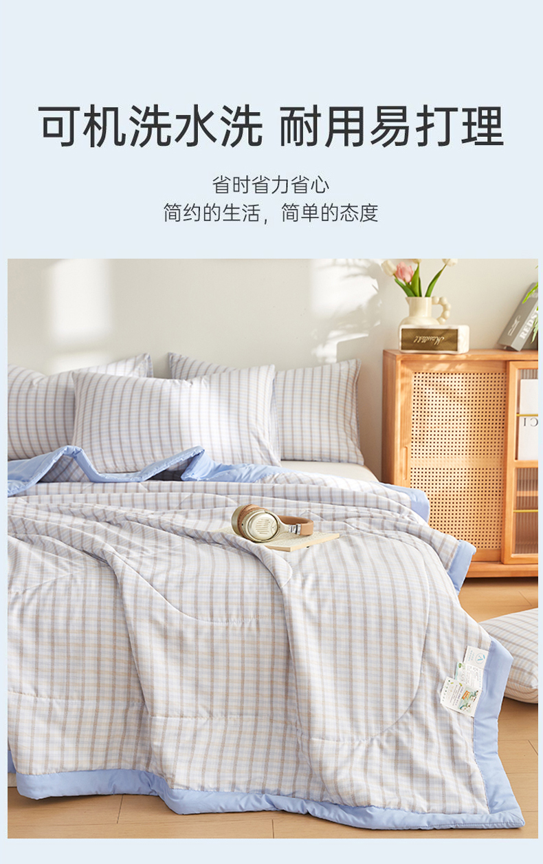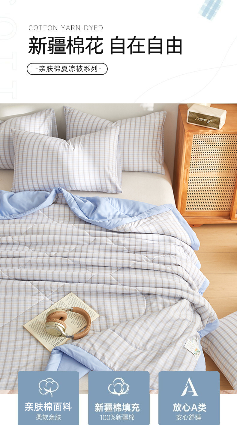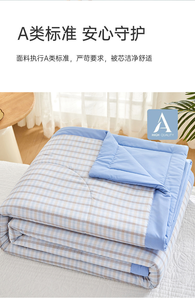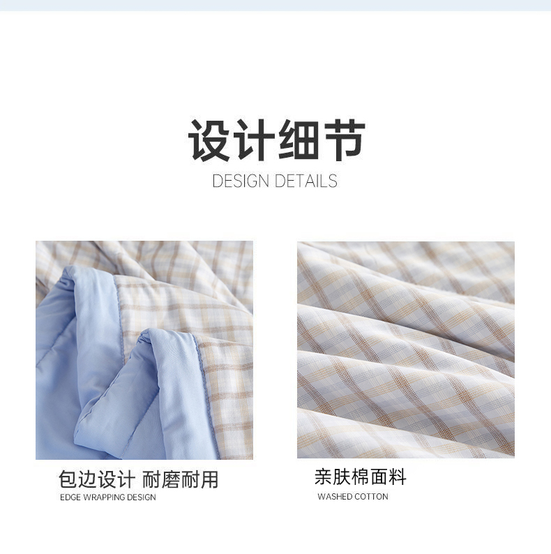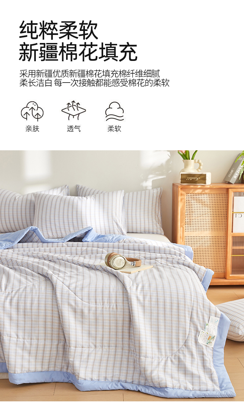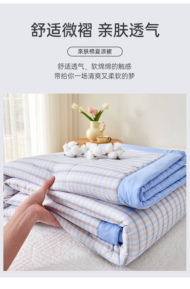 商品名称:海洋家纺 2026新款100%新疆棉花格子夏被亲肤仿棉夏凉被纯手包边空调被薄被子 格言