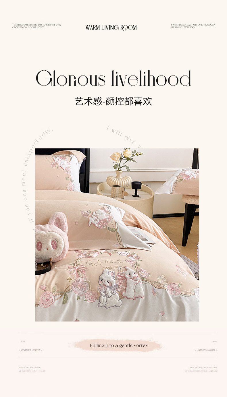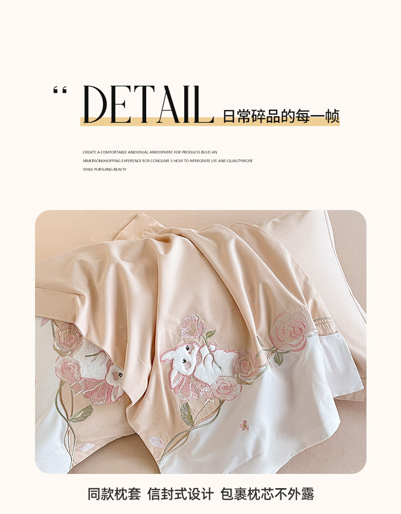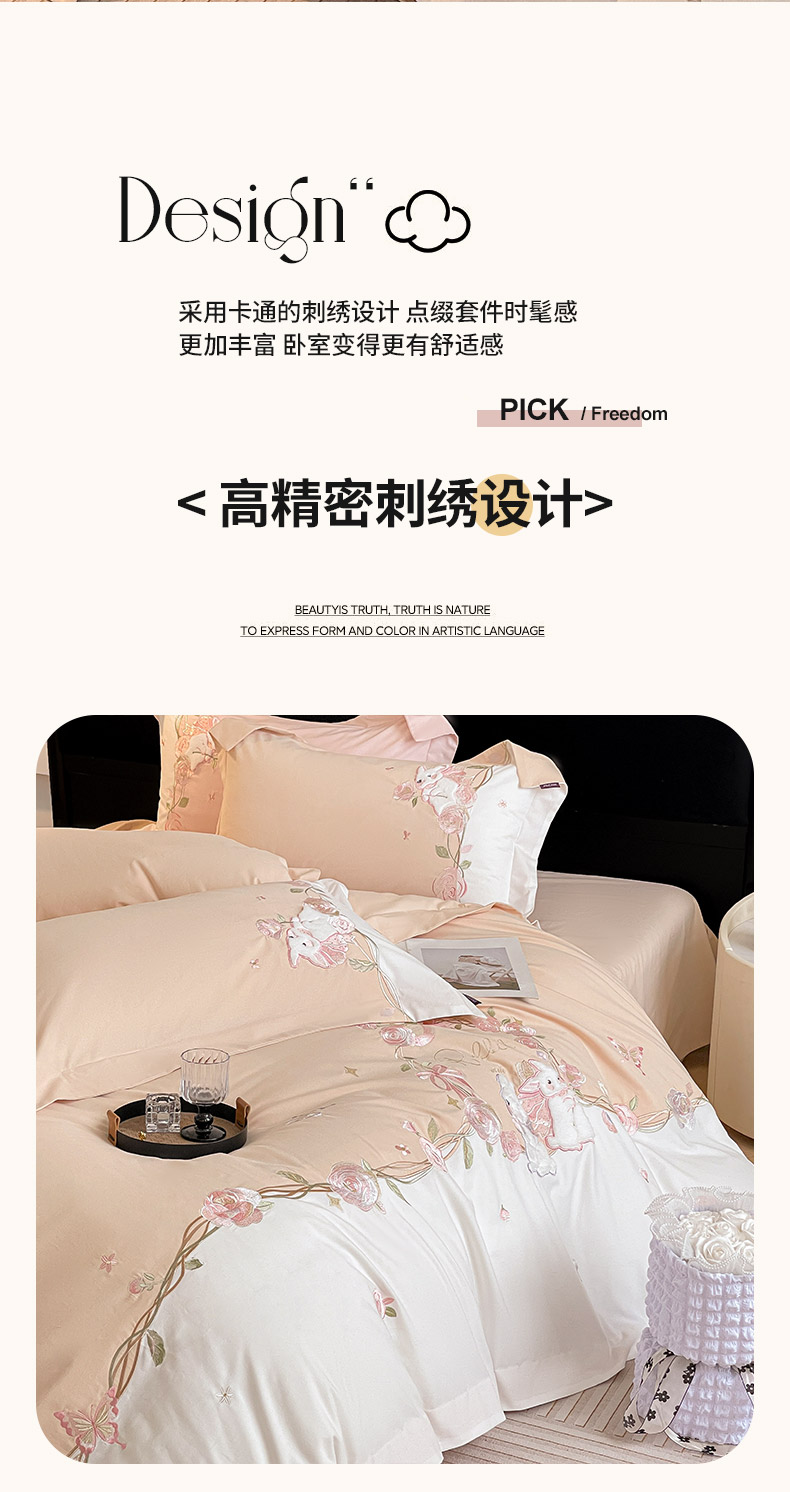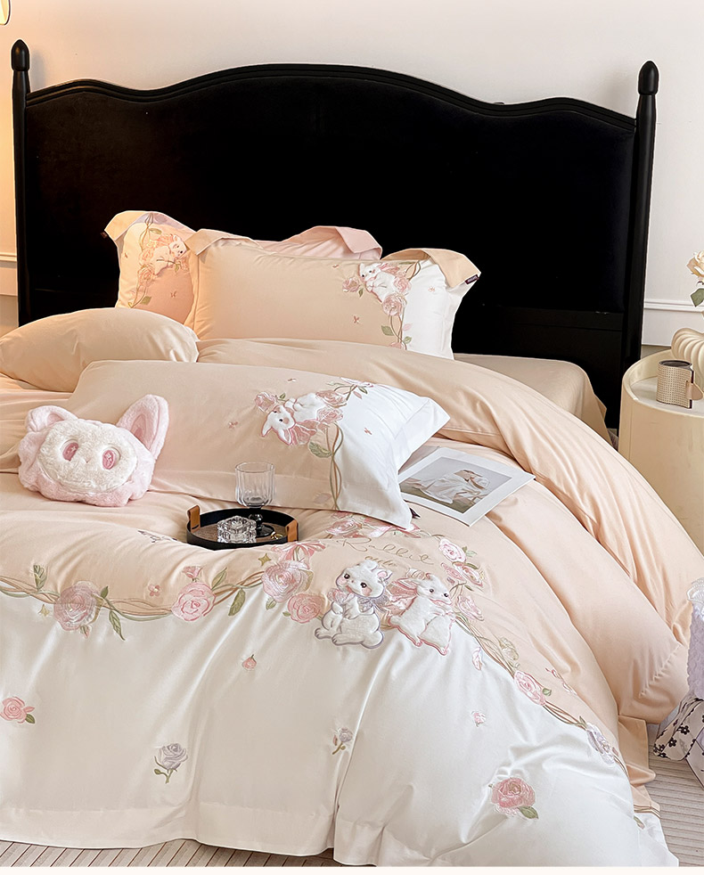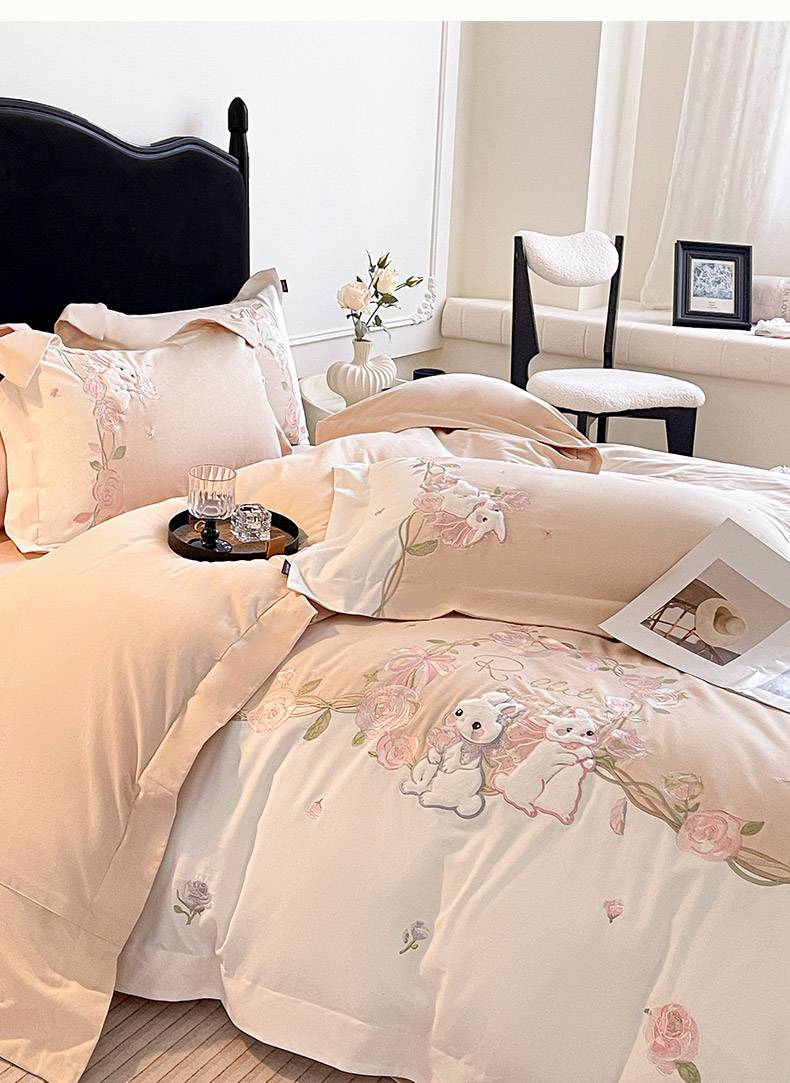 当前位置: 91家纺网 > 商品网购 > 床品套件 > 四件套 > 全棉普通四件套 > 爱妮菲家纺 2026爆款新品少女心A类100支长绒棉纯棉四件套全棉刺绣兔子被套床单床笠公主风 月汐兔-柔杏