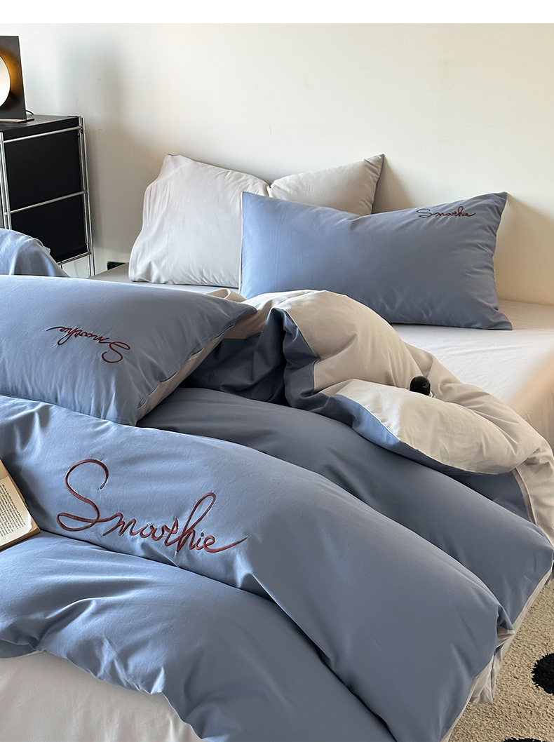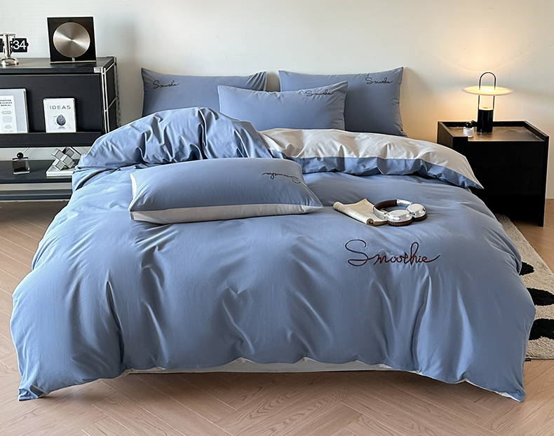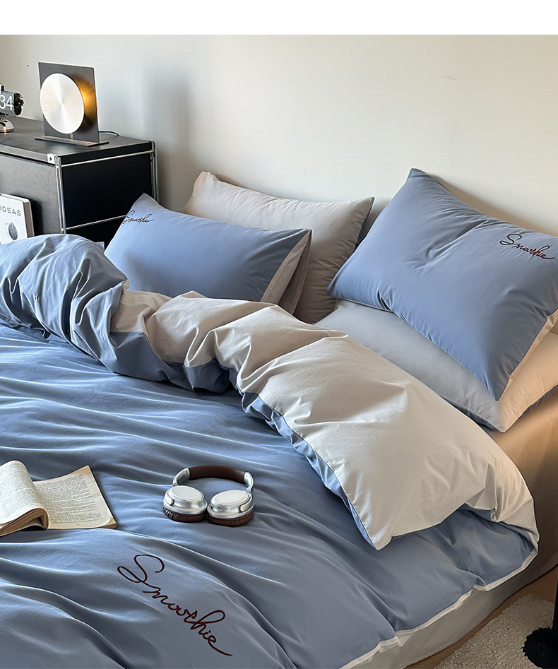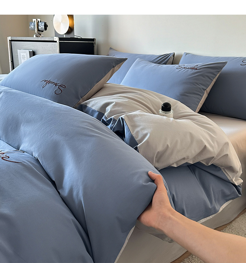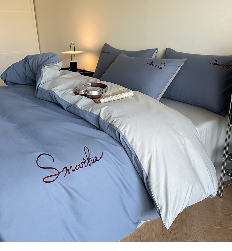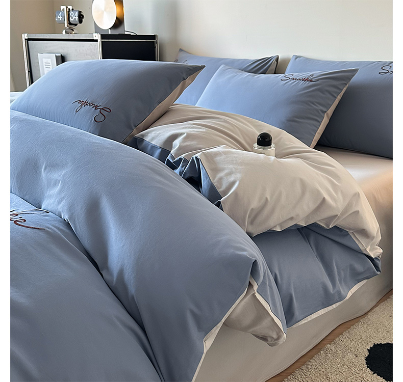 当前位置: 91家纺网 > 商品网购 > 床品套件 > 四件套 > 全棉普通四件套 > ab家纺 2026新款刺绣双拼40支全棉水洗四件套 晴空蓝烟灰