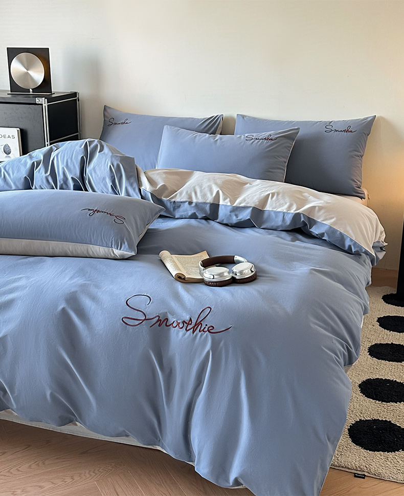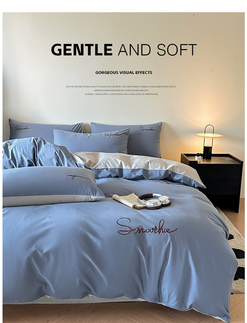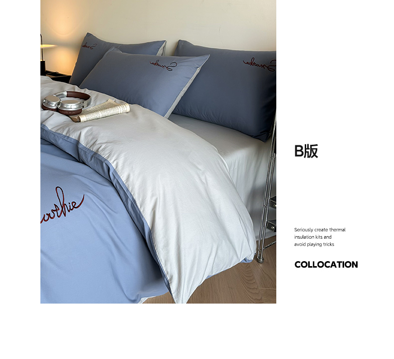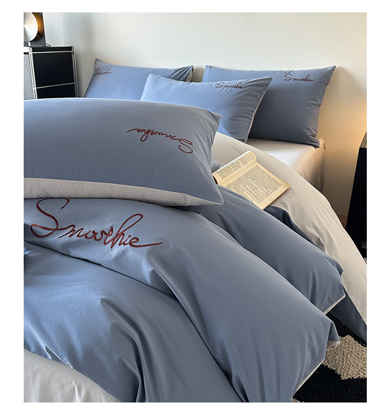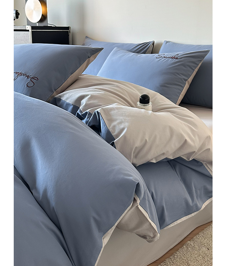 当前位置: 91家纺网 > 商品网购 > 床品套件 > 四件套 > 全棉普通四件套 > ab家纺 2026新款刺绣双拼40支全棉水洗四件套 晴空蓝烟灰