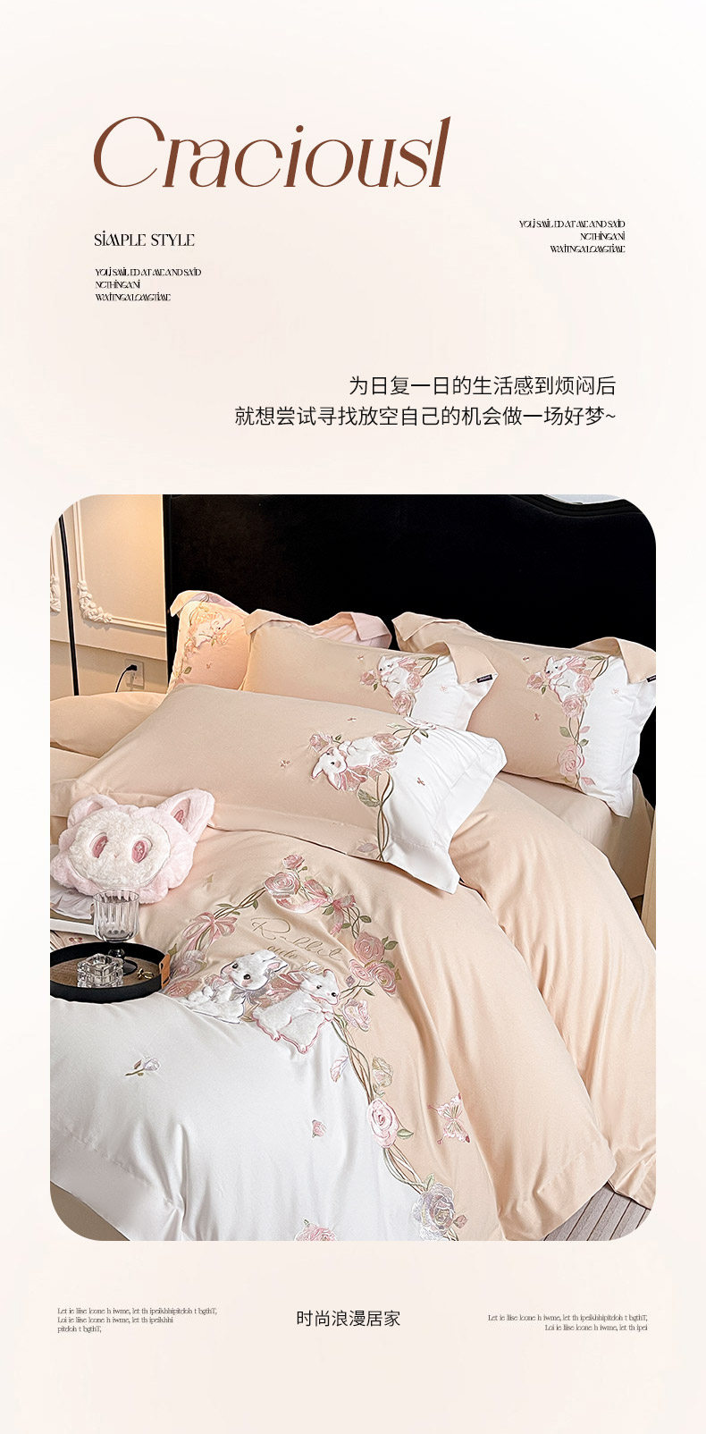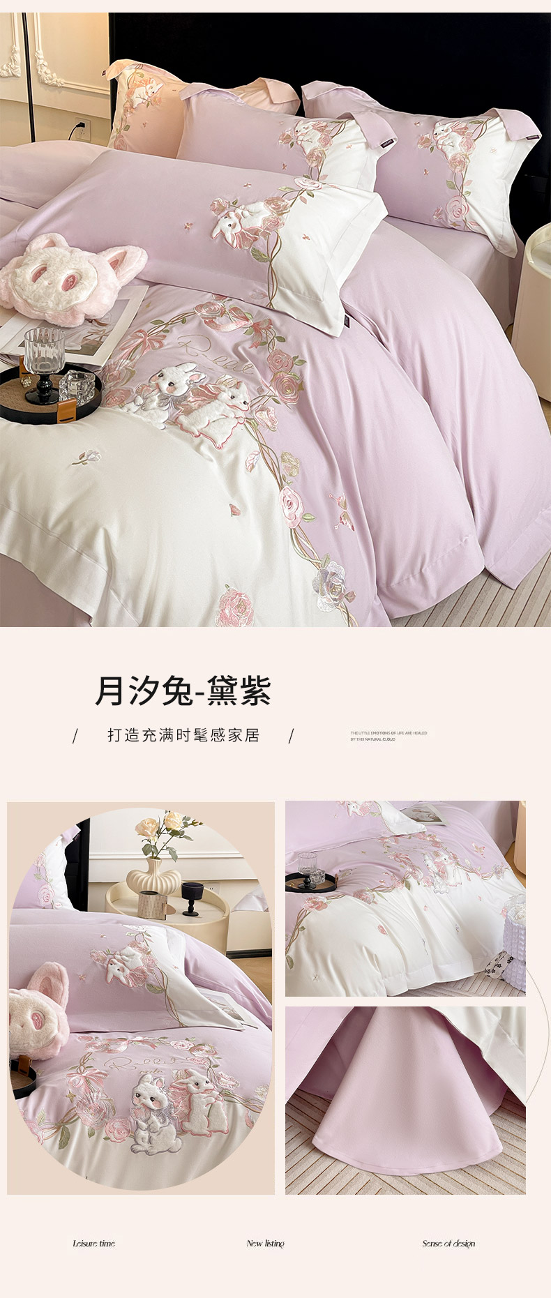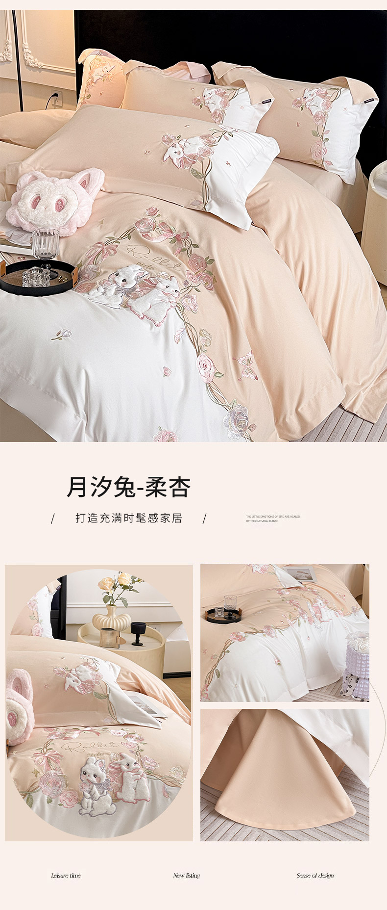 当前位置: 91家纺网 > 商品网购 > 床品套件 > 四件套 > 全棉普通四件套 > 乔利卡沃 2026爆款新品少女心A类100支长绒棉纯棉四件套全棉刺绣兔子被套床单床笠公主风 月汐兔-柔杏