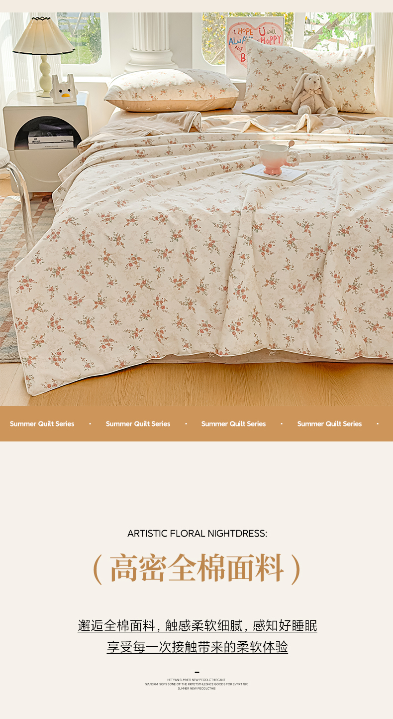 • 91家纺网 家纺一手货源 找家纺 典冠 2026新款100%里外全棉夏被 夏被四件套 繁花