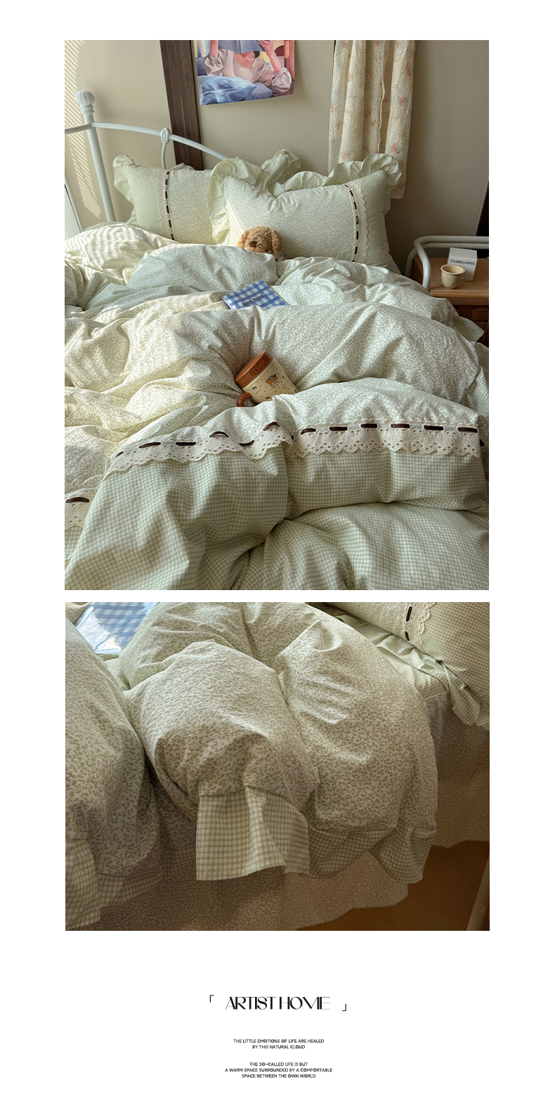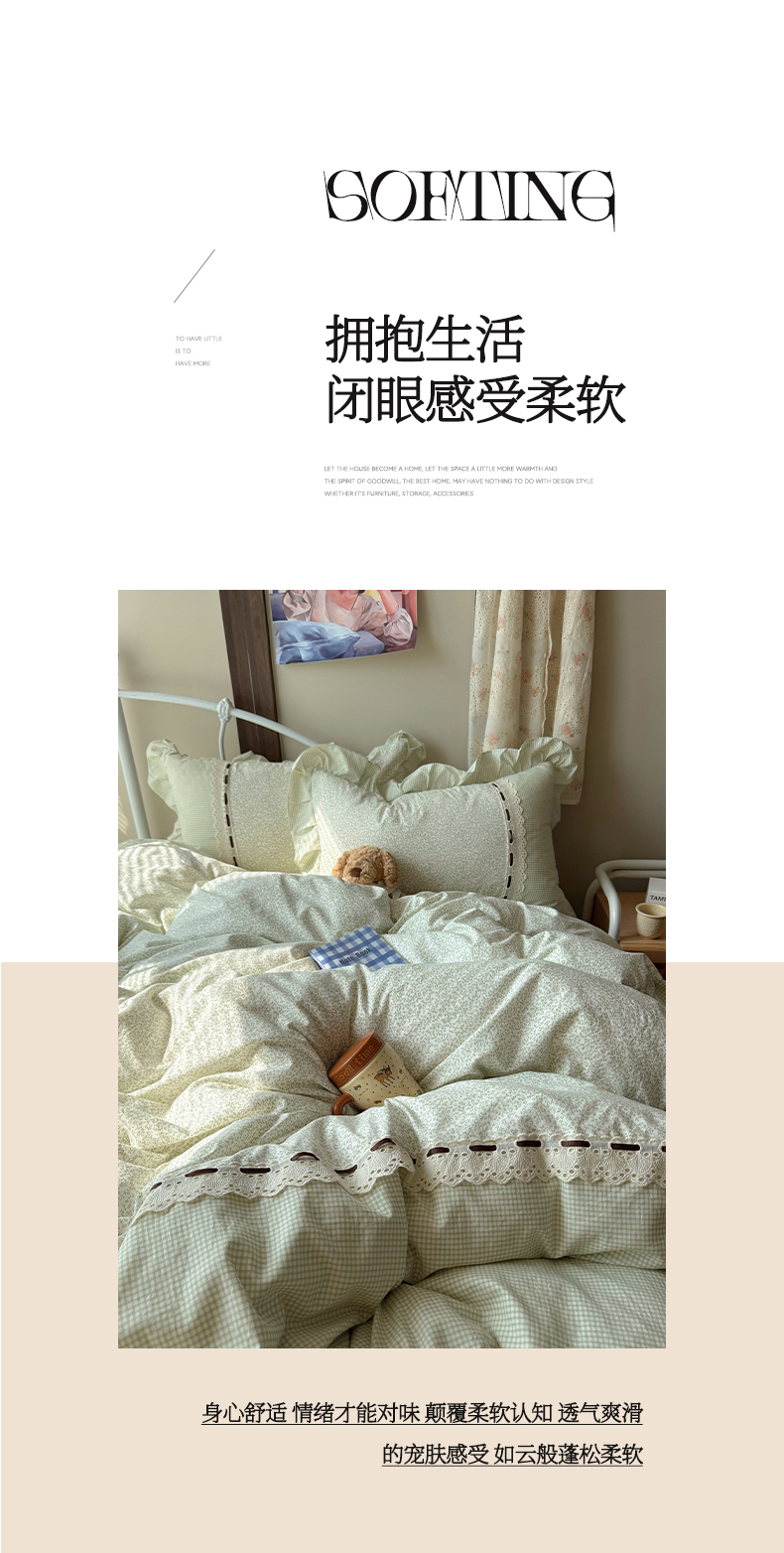 (总)韩都家居 2026春夏新款古法仿棉蕾丝花边四件套,粉糯花眠,花边南瓜,蓝调小顽家,蕾丝花漾,奶杏蔷薇,青提碎花,雾里蔷薇,芋泥碎花