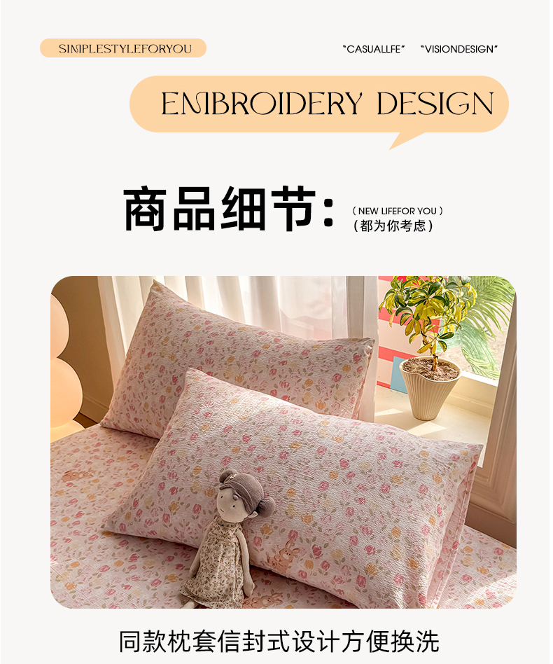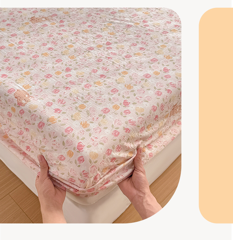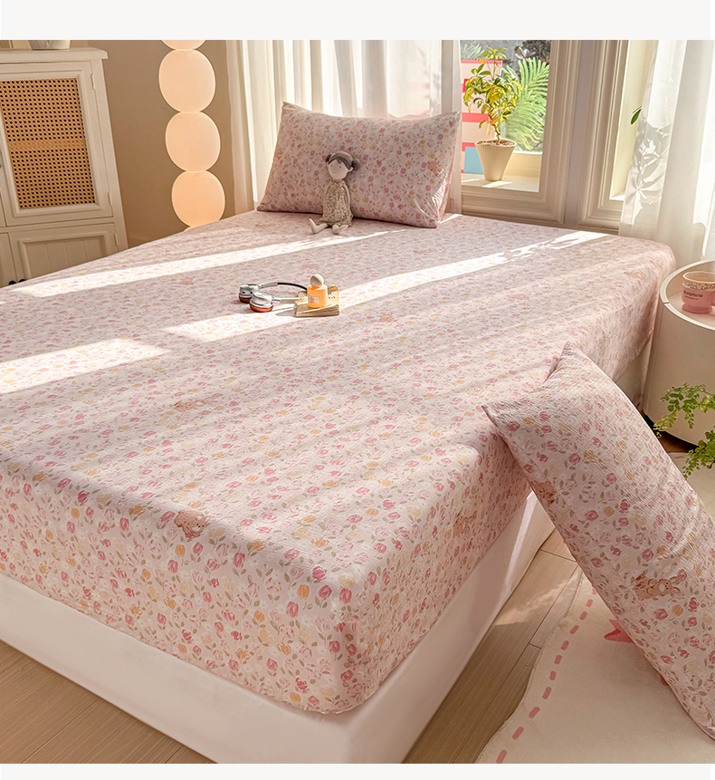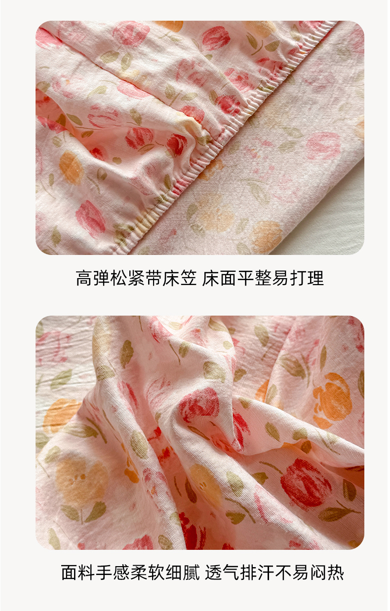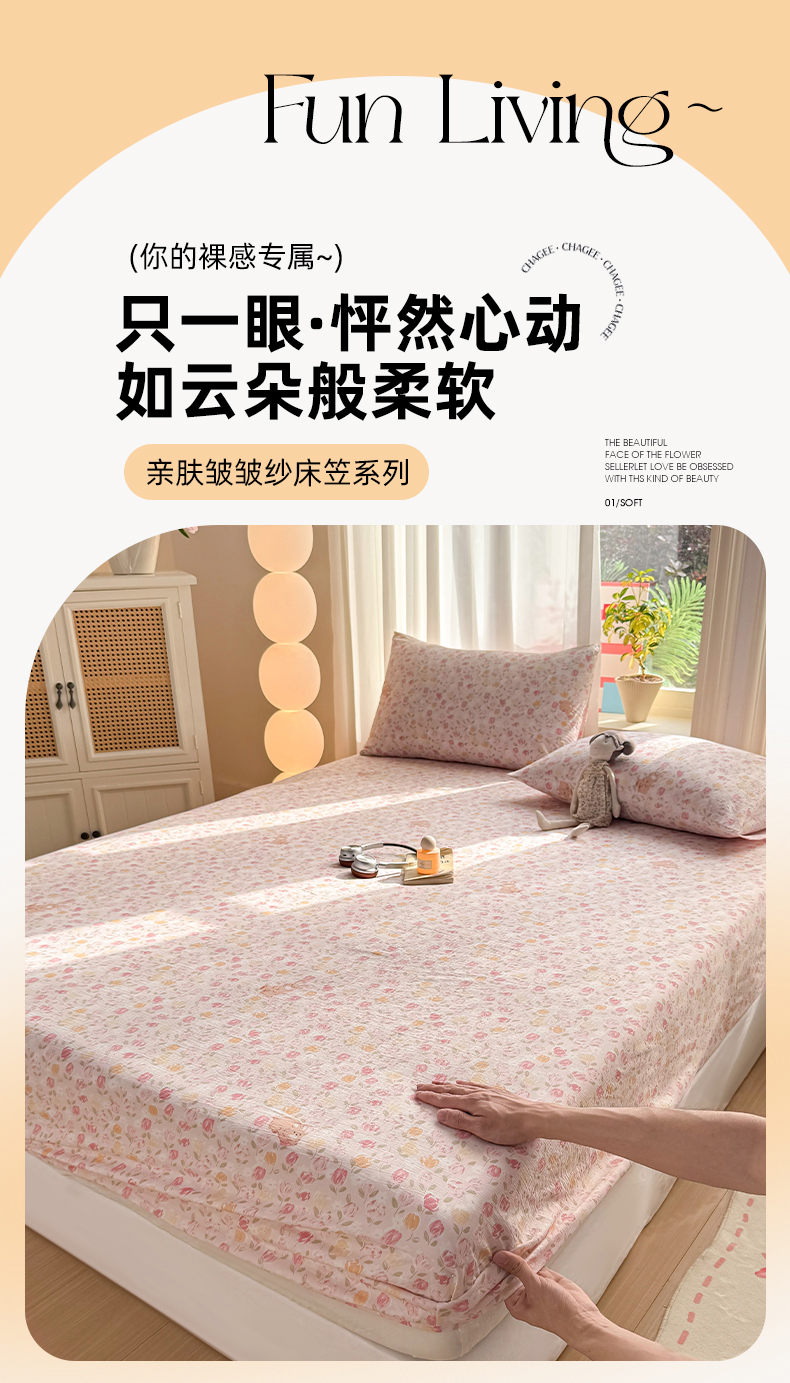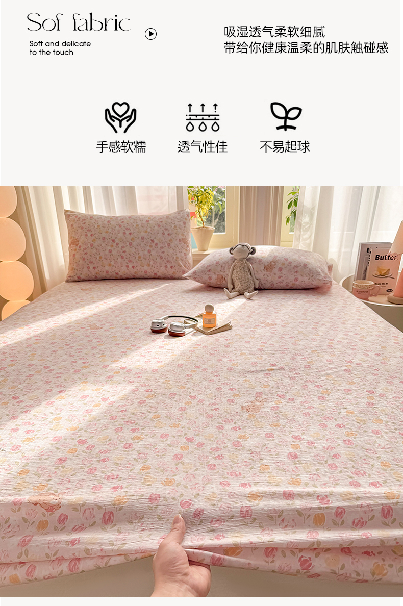 • 91家纺网 家纺一手货源 找家纺 丝芙妮家居 2026新款四季皱皱棉柔软透气不闷汗木棉床笠单件三件套-系列三 春之约