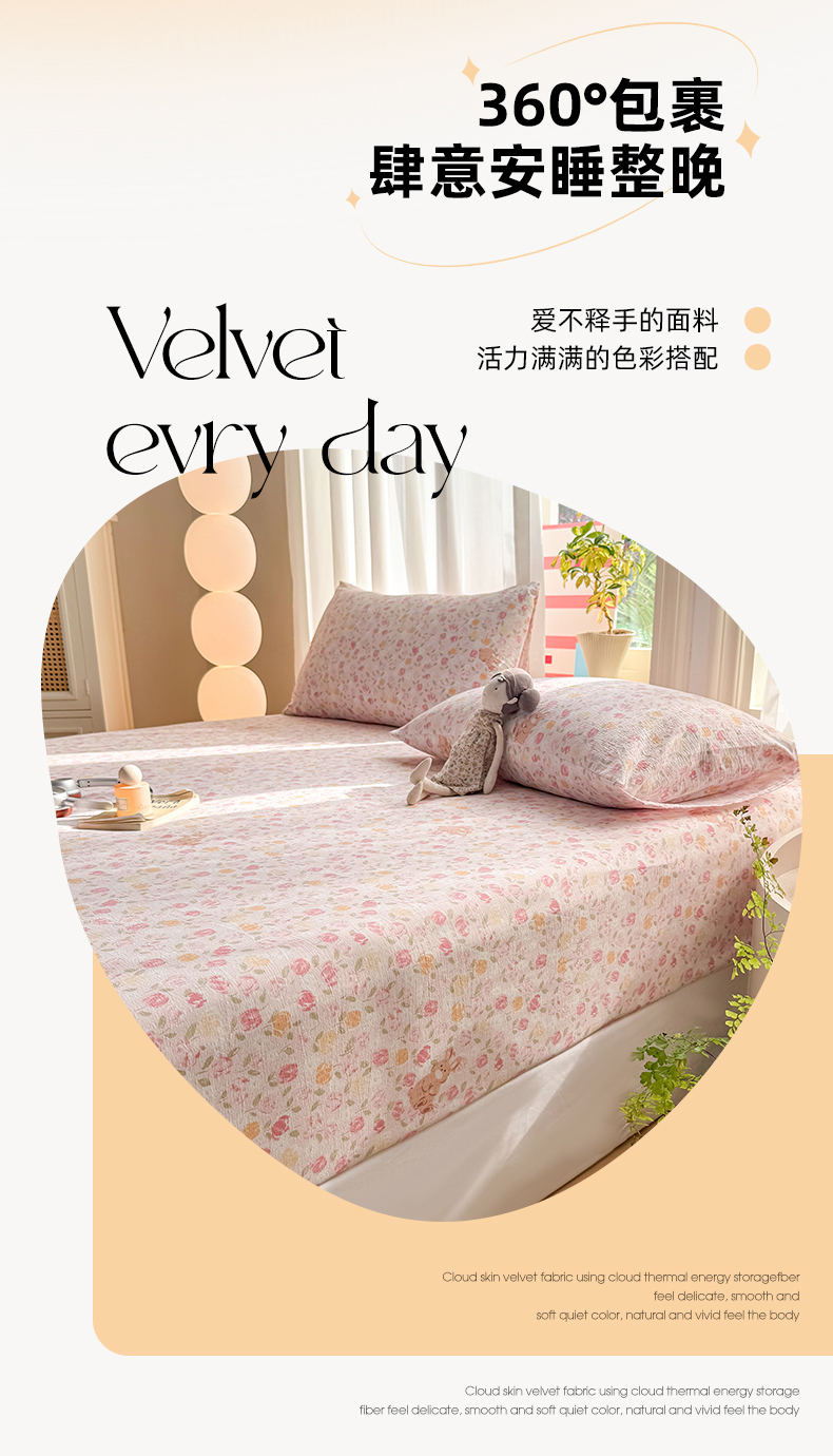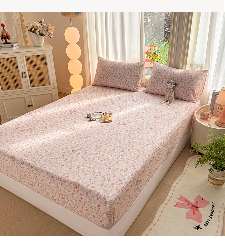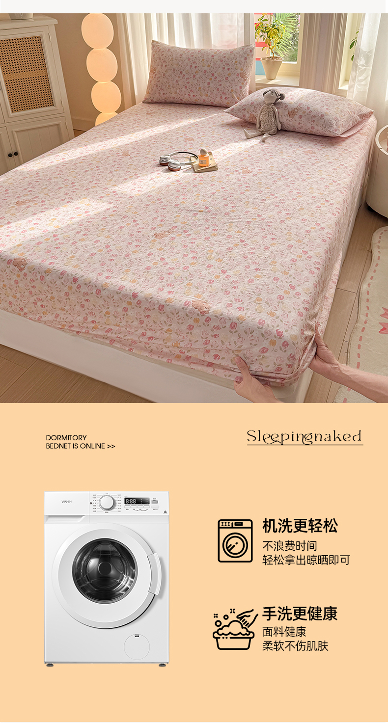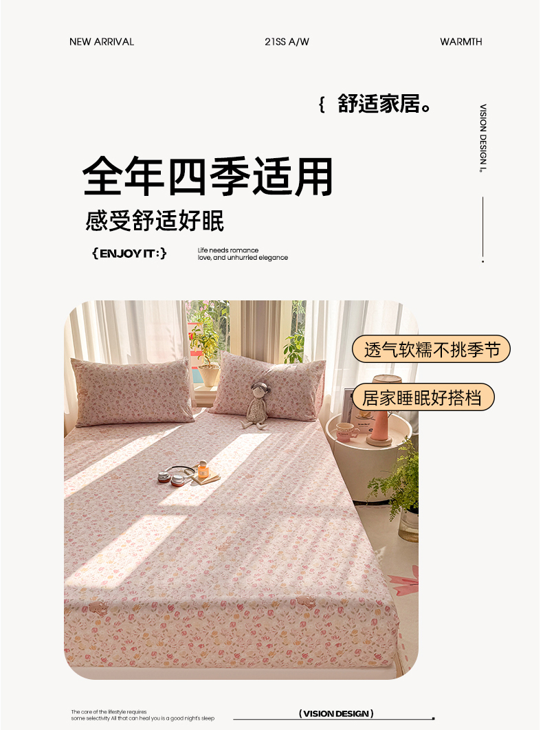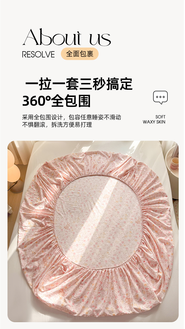 • 91家纺网 家纺一手货源 找家纺 丝芙妮家居 2026新款四季皱皱棉柔软透气不闷汗木棉床笠单件三件套-系列三 春之约