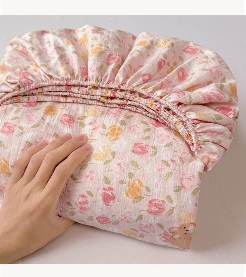 丝芙妮家居 2026新款四季皱皱棉柔软透气不闷汗木棉床笠单件三件套-系列三 春之约