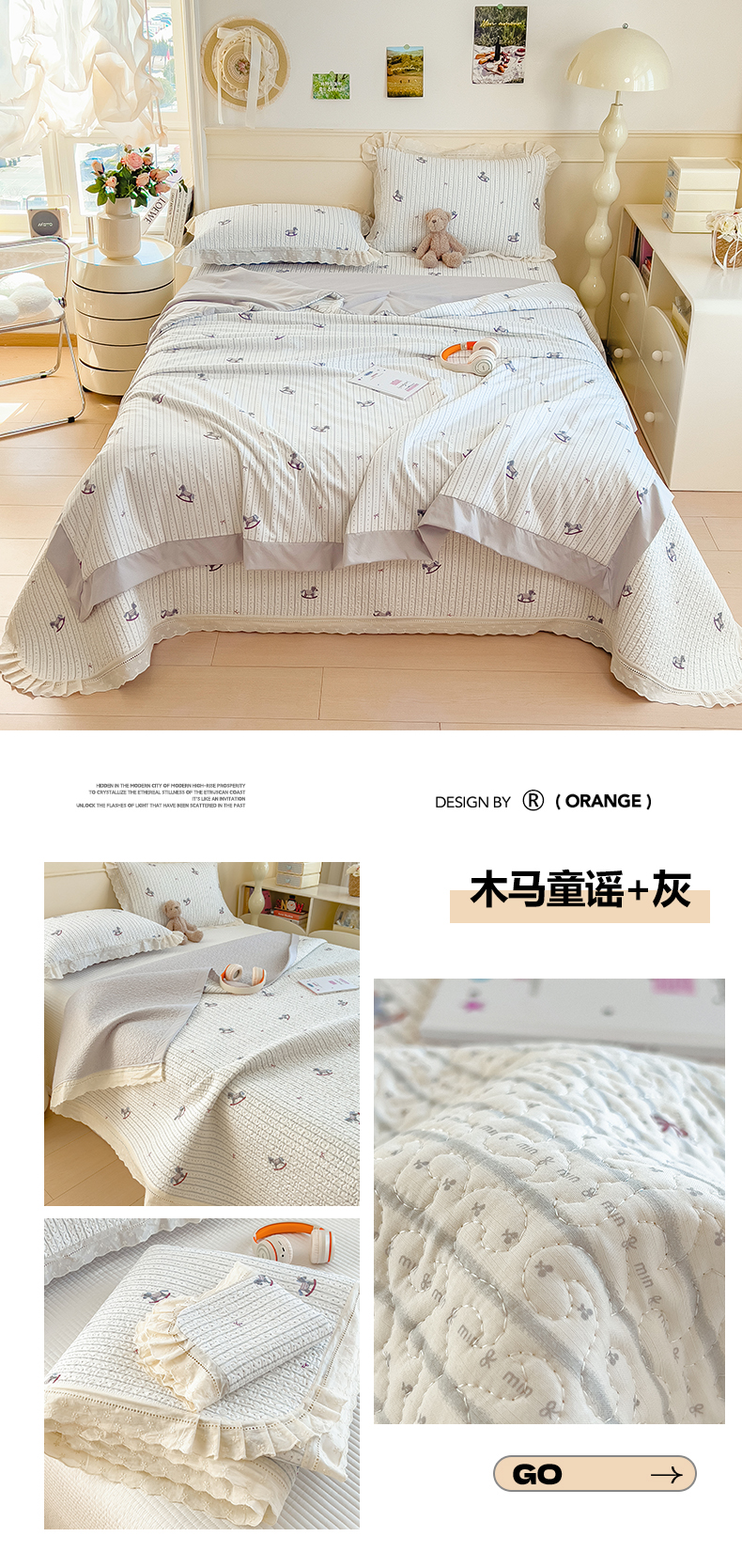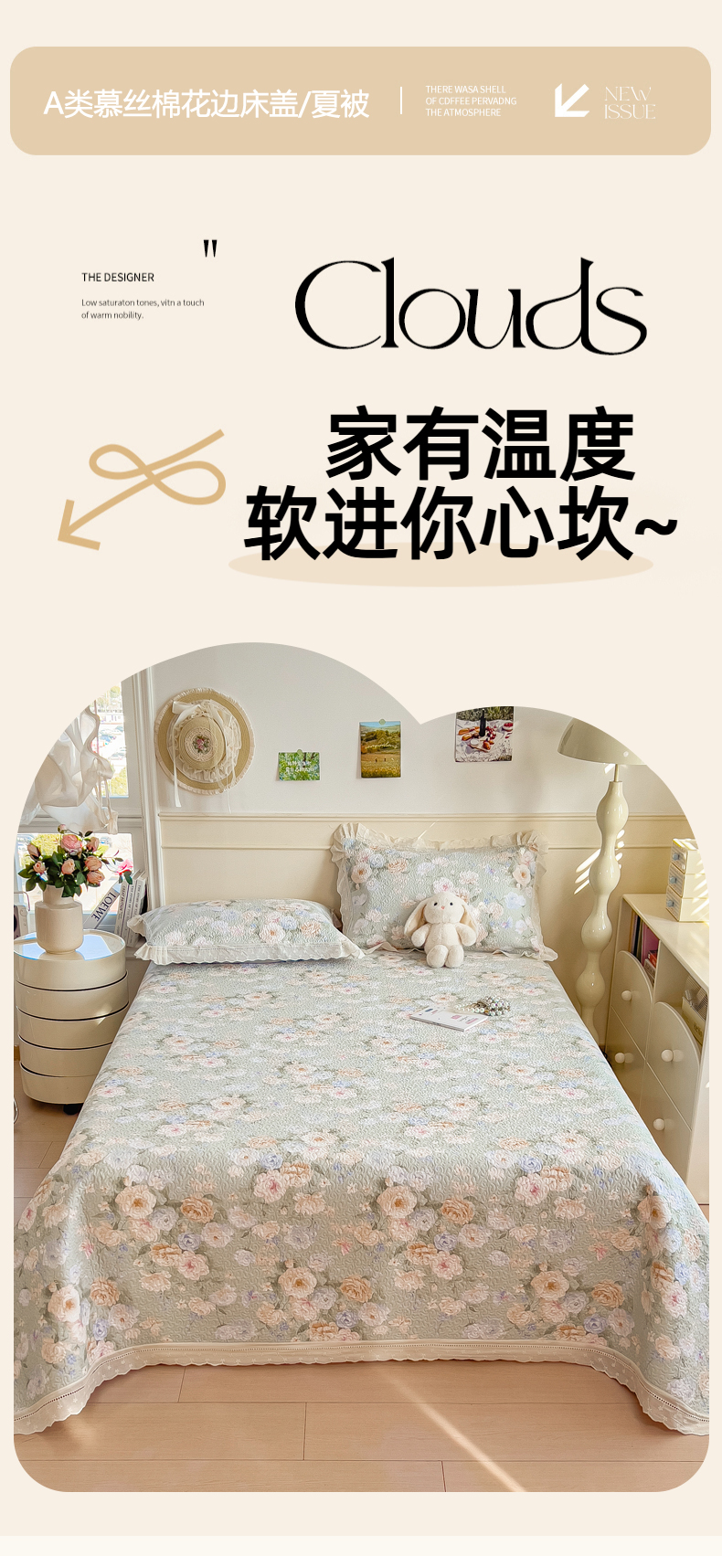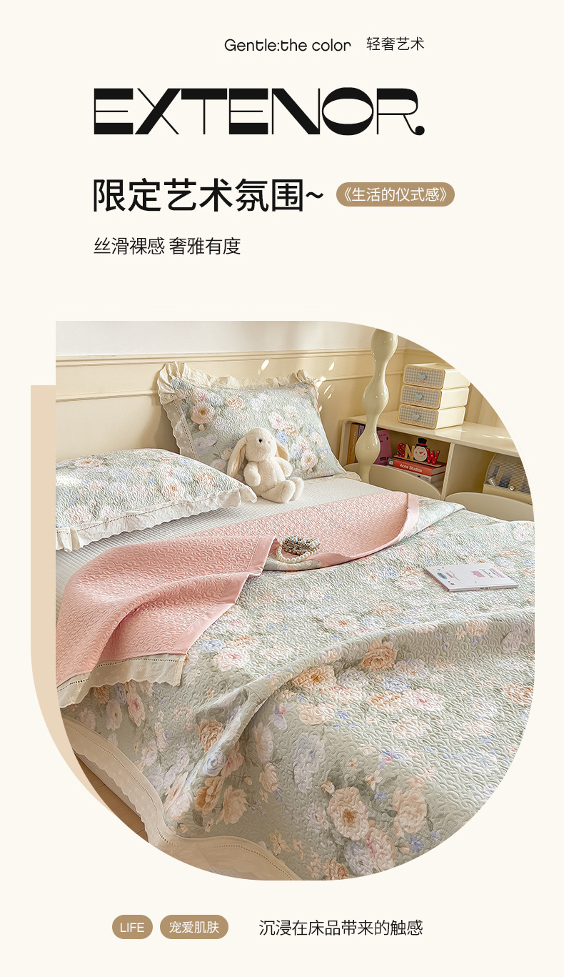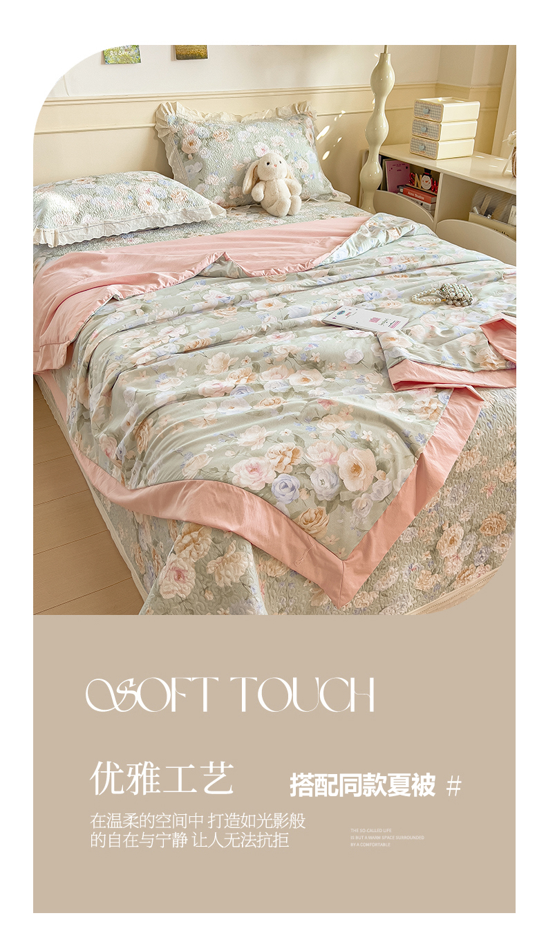 (总)慕木家纺 2026新款A类印花慕丝棉花边款床盖夏被系列(抽空压缩可供跨境)提供买家秀,莫兰迪+浅紫,洛可可+粉,蓝庭叙+灰,锦芙+驼,金兰+黄,凡尔赛+粉,蓝漪+蓝,洛雅+黛紫,墨芳+灰,清漫+绿,波点序章+驼,青妍+粉,星心兔语+粉,熊兔叙+蓝,云菇森林+浅紫,木马童谣+灰,蛋糕熊+绿,甜梦熊+浅粉