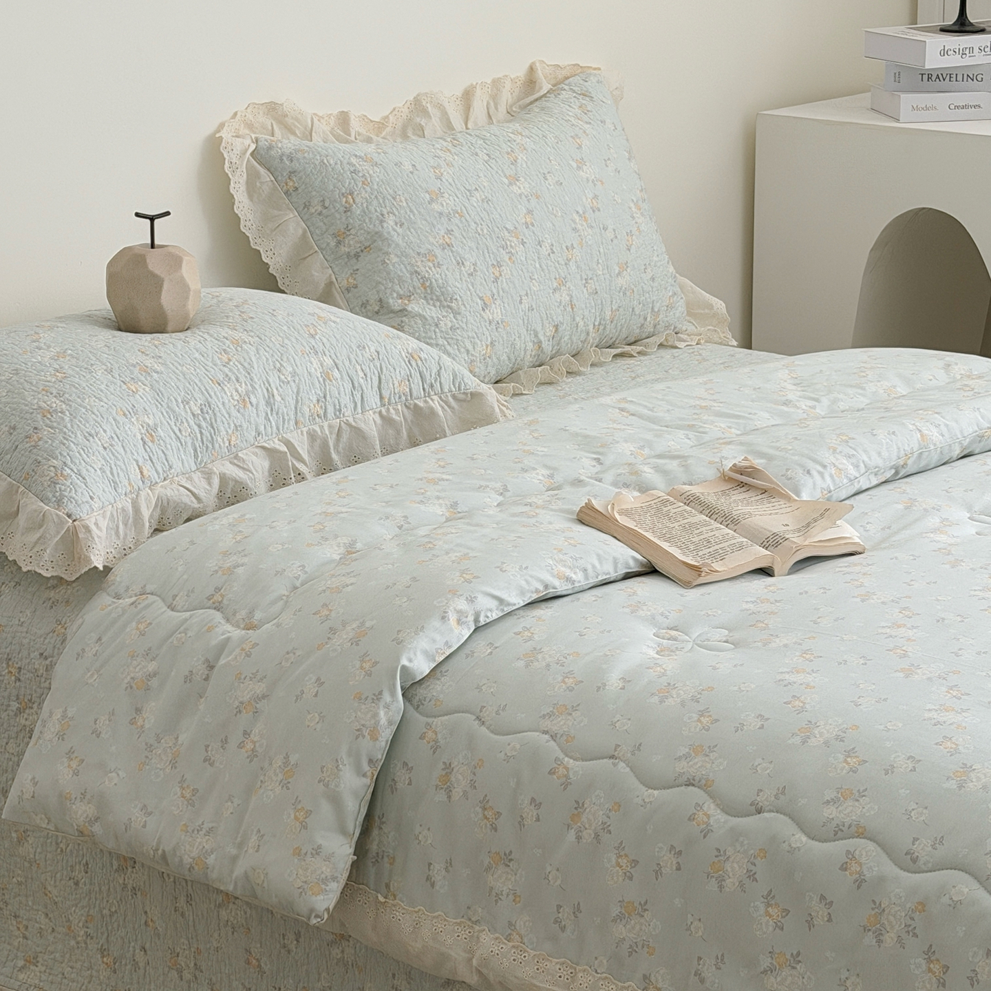 (总)佰织鑫家居 2026新款韩系花边款全棉砂洗多功能四件套夏被四件套(会员-5),洛伊,南山雏菊,思意绵绵,宛如初见,小柔花夕,悠悠花园