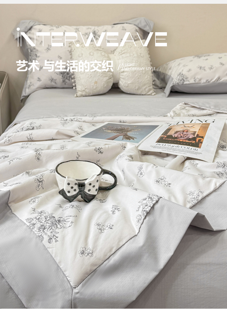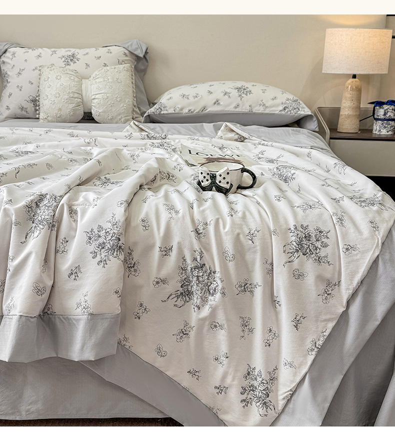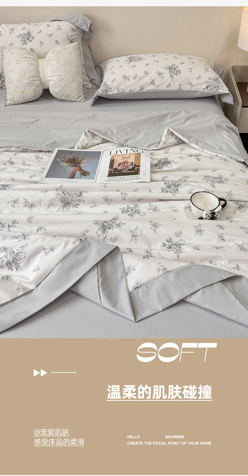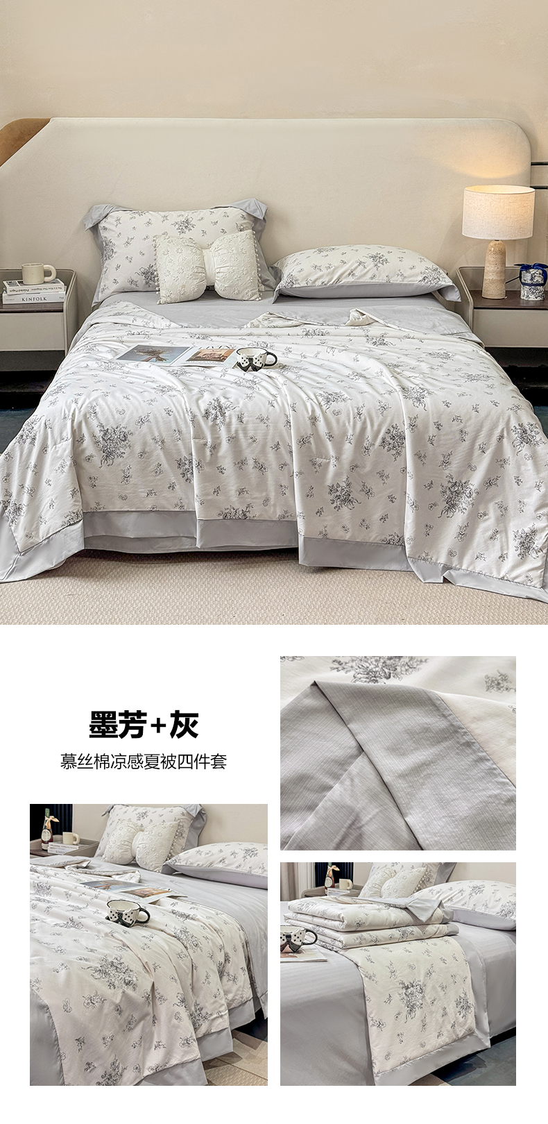 当前位置: 91家纺网 > 商品网购 > 床品套件 > 四件套 > 其它四件套 > 慕木家纺 2026新款A类印花慕丝棉凉感夏被夏凉被空调被四件套 墨芳+灰