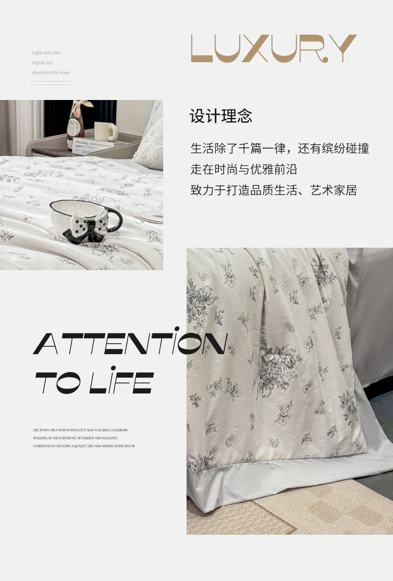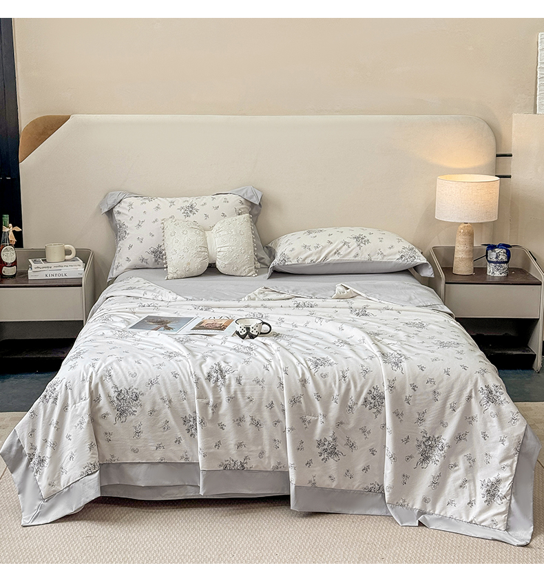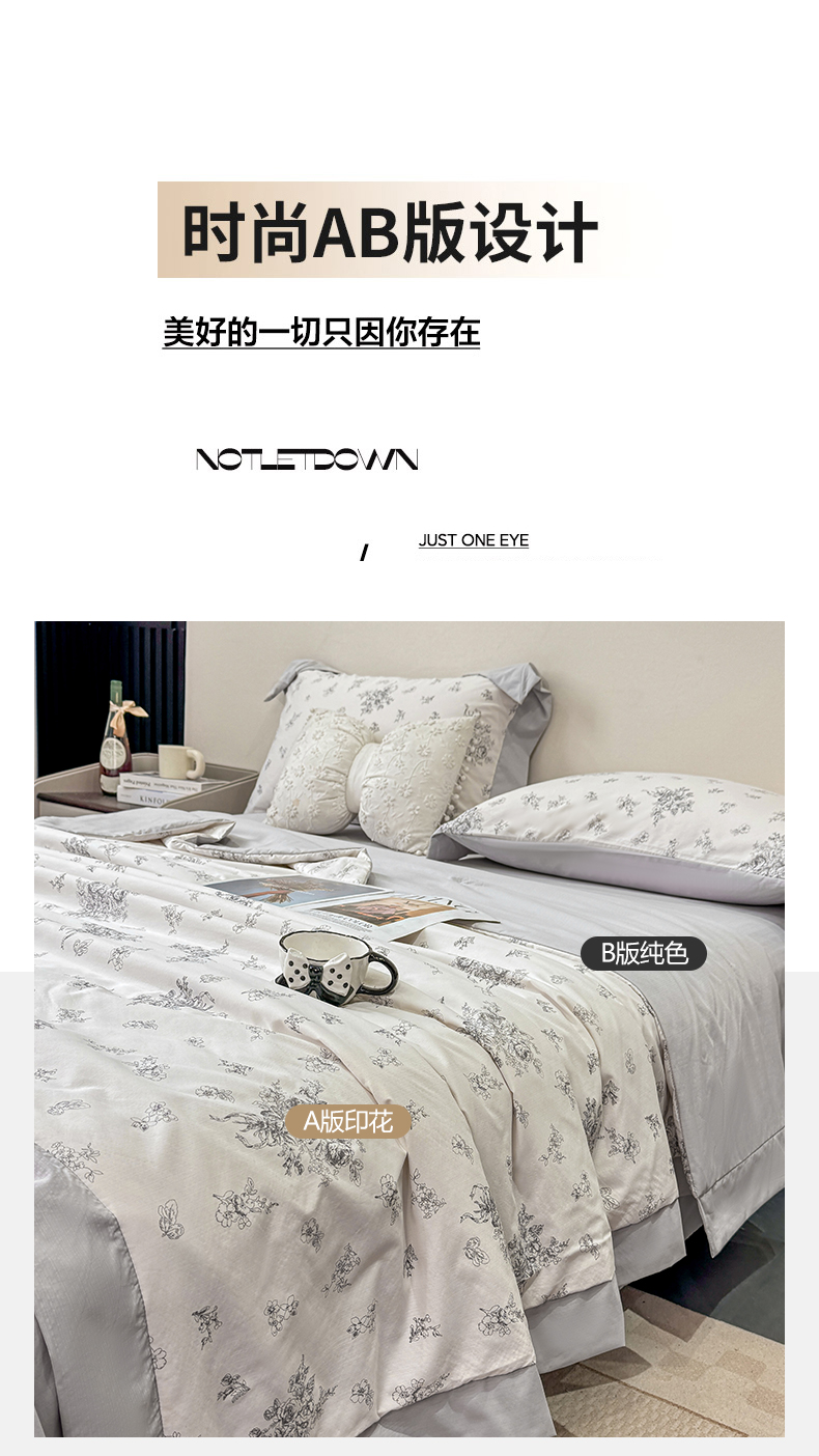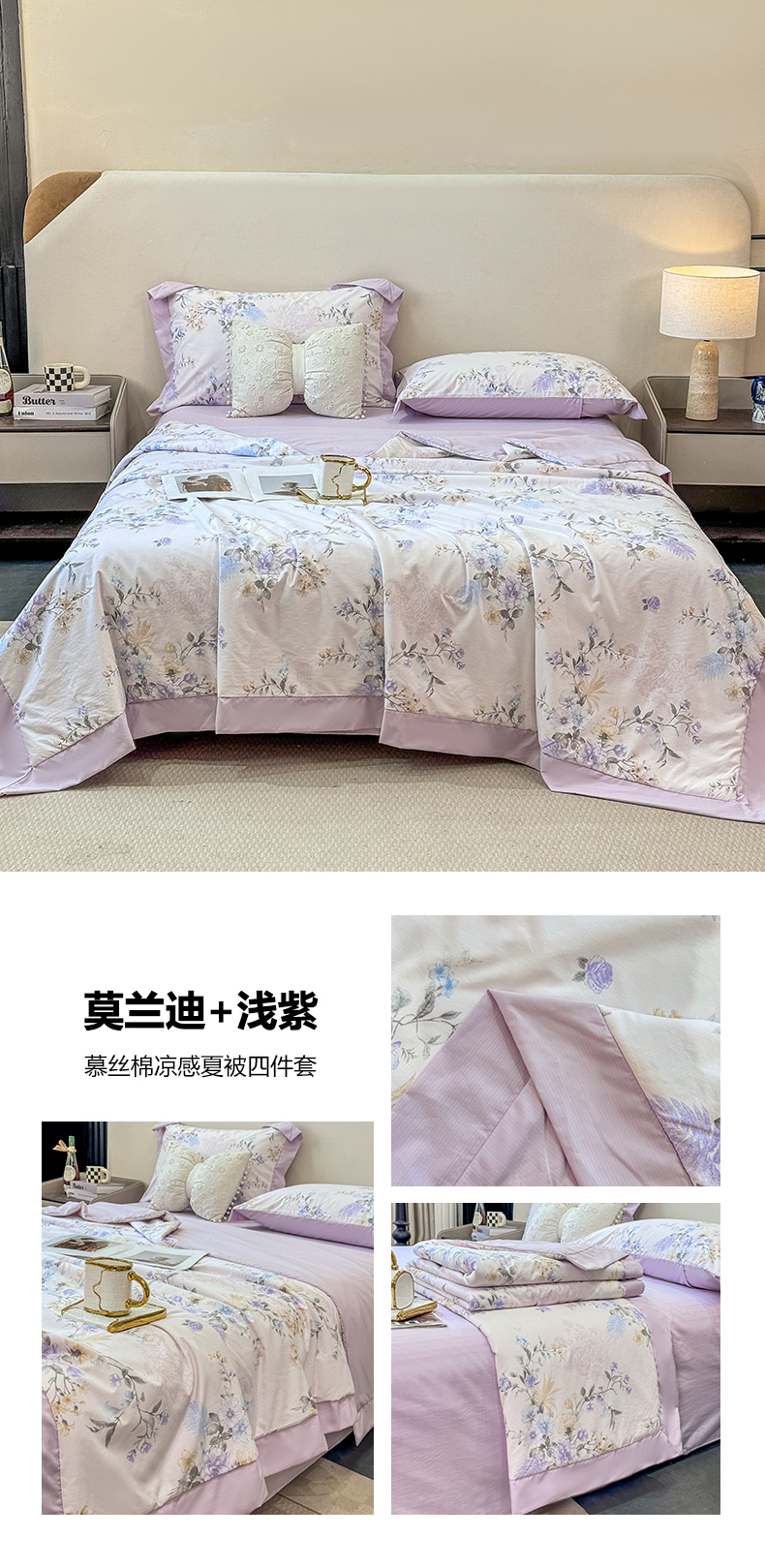 当前位置: 91家纺网 > 商品网购 > 床品套件 > 四件套 > 其它四件套 > 慕木家纺 2026新款A类印花慕丝棉凉感夏被夏凉被空调被四件套 墨芳+灰