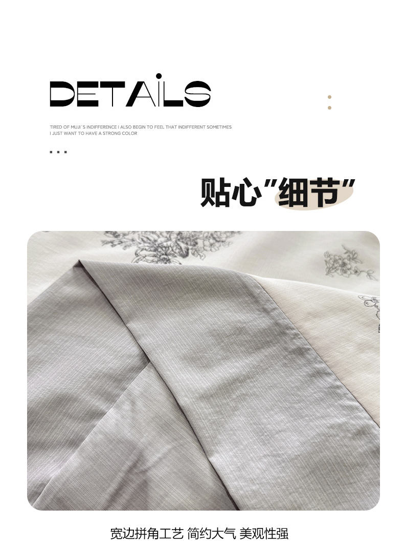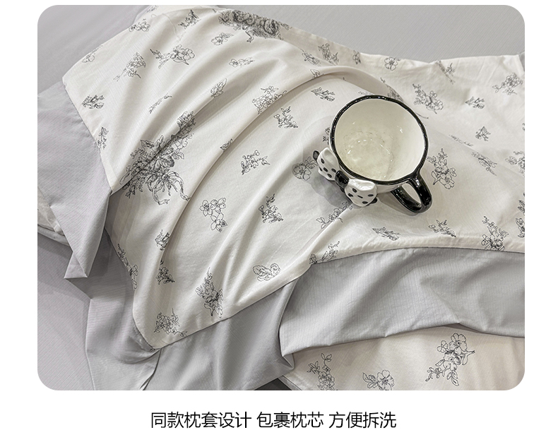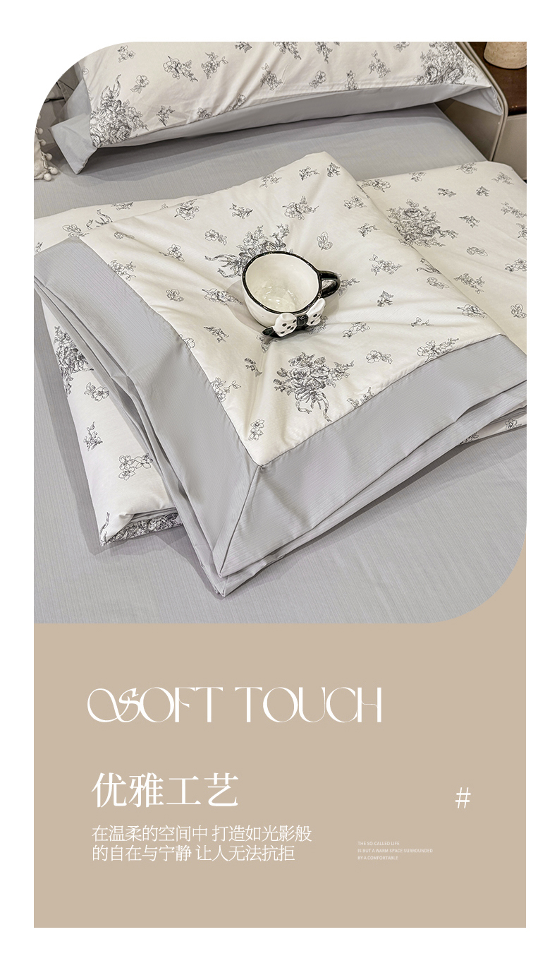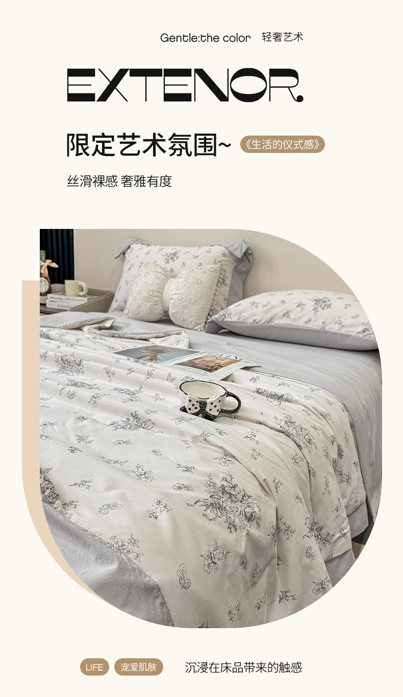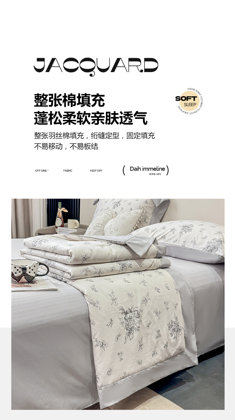 当前位置: 91家纺网 > 商品网购 > 床品套件 > 四件套 > 其它四件套 > 慕木家纺 2026新款A类印花慕丝棉凉感夏被夏凉被空调被四件套 墨芳+灰
