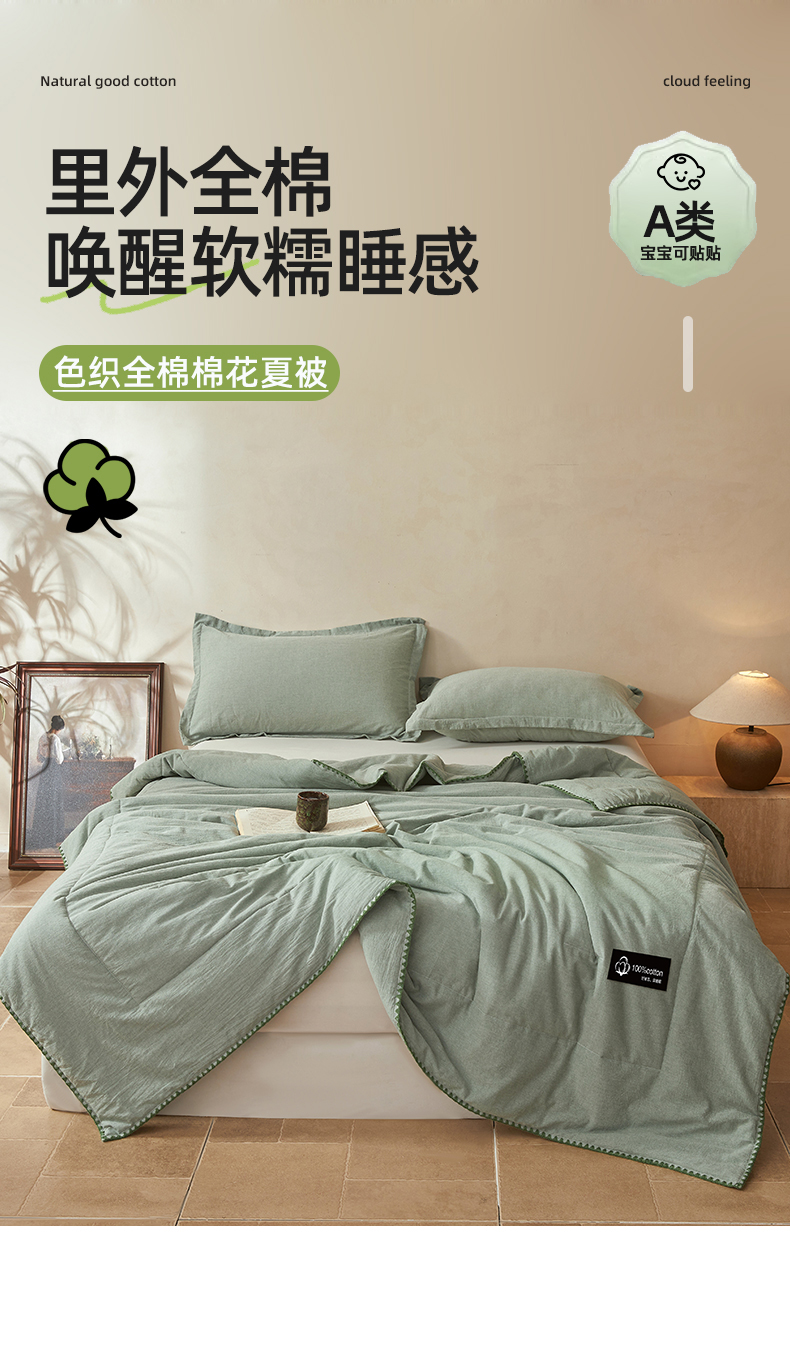 当前位置: 91家纺网 > 商品网购 > 被子 > 夏被 > 阳光被业 2026新款100%棉花双层纱夏被新疆棉花空调被可机洗夏凉被绣边踩棉工艺 纯色--豆绿