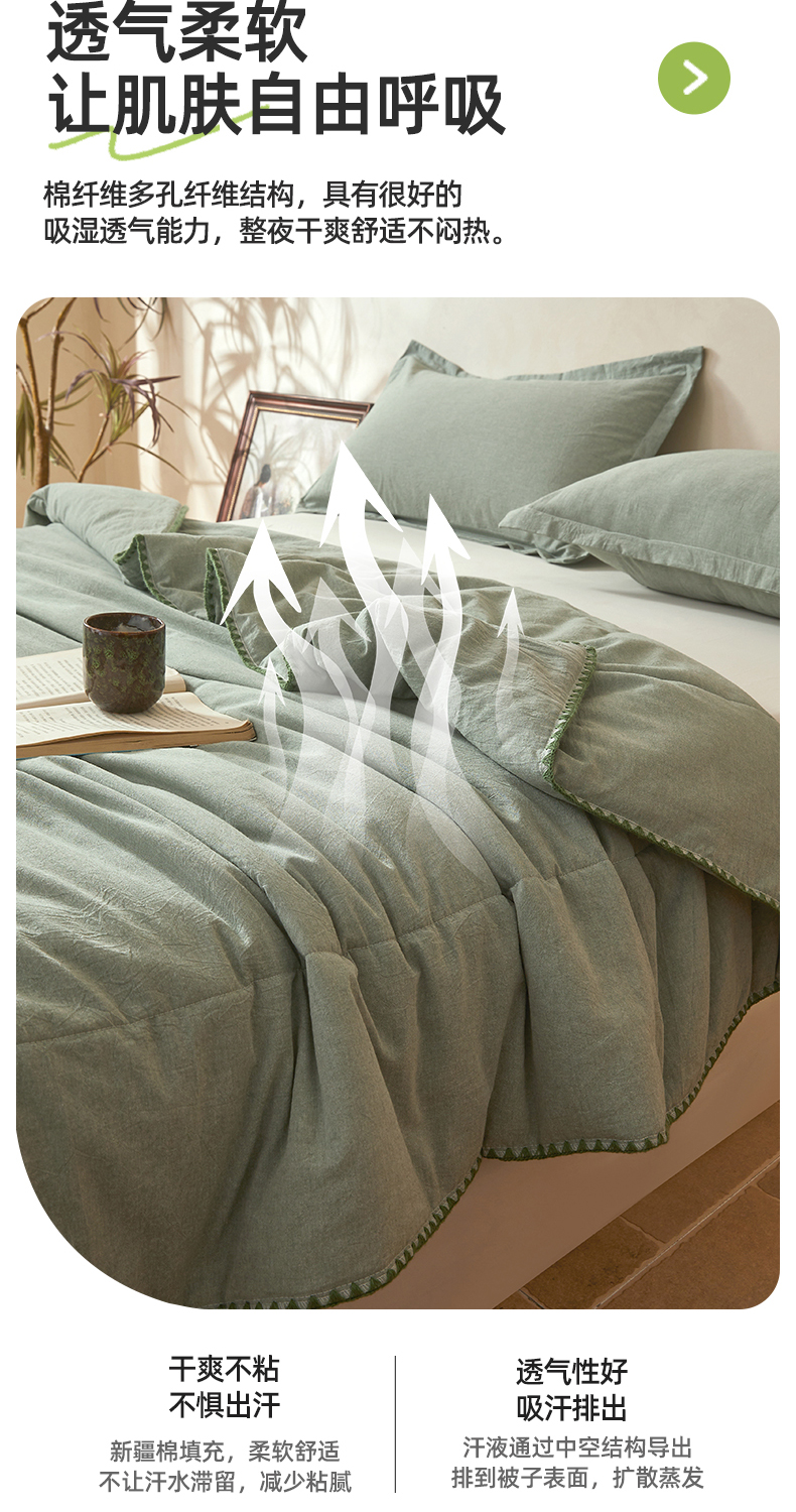 • 91家纺网 家纺一手货源 找家纺 阳光被业 2026新款100%棉花双层纱夏被新疆棉花空调被可机洗夏凉被绣边踩棉工艺 纯色--豆绿
