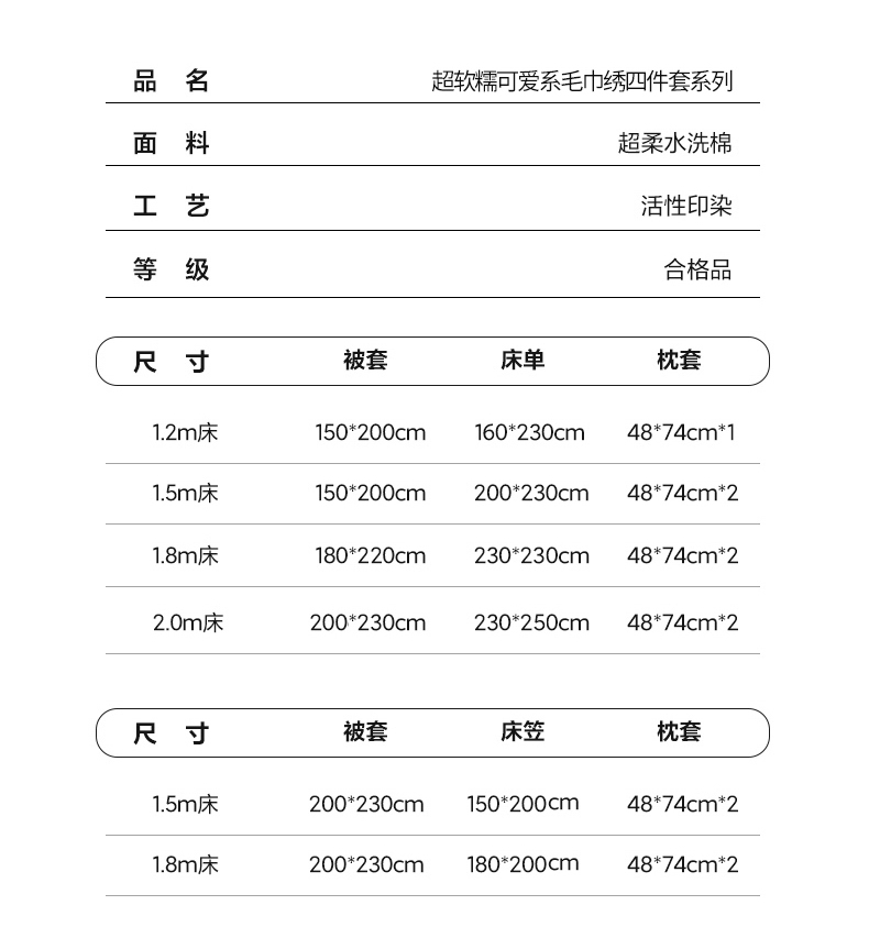 【床笠款】1.8四件套-被套200x230 | ¥65.00 |