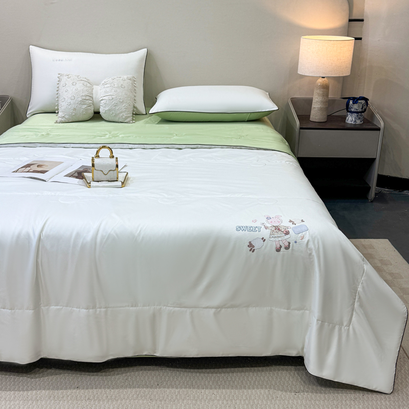 • 91家纺网 家纺一手货源 找家纺 (总)蕾诺家纺 2026新款冰丝刺绣真丝轻奢简约夏被 被子被芯,潮流-墨绿,潮流-繁星蓝,潮流-高级灰,潮流-奶油粉,潮流-嫩黄,潮流-浅灰,潮流-月光蓝