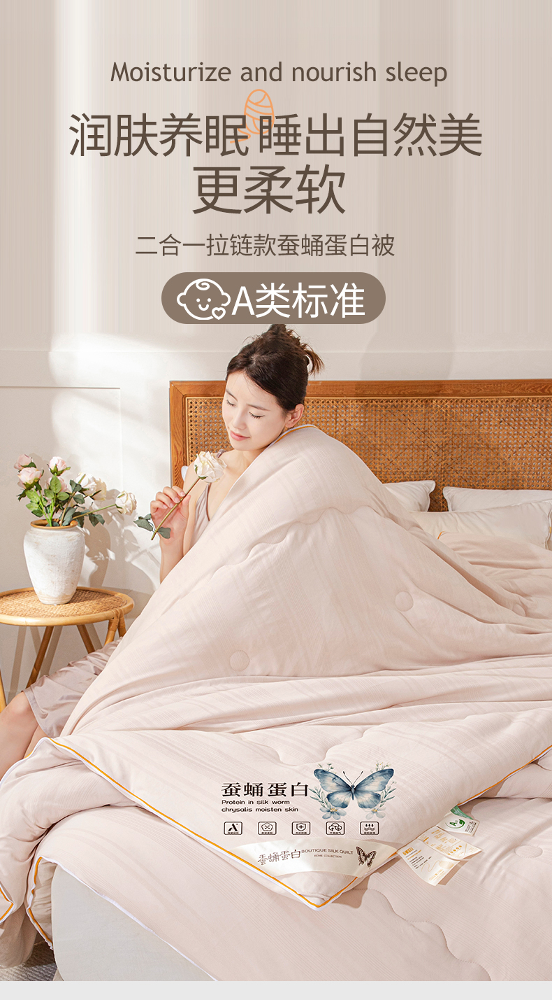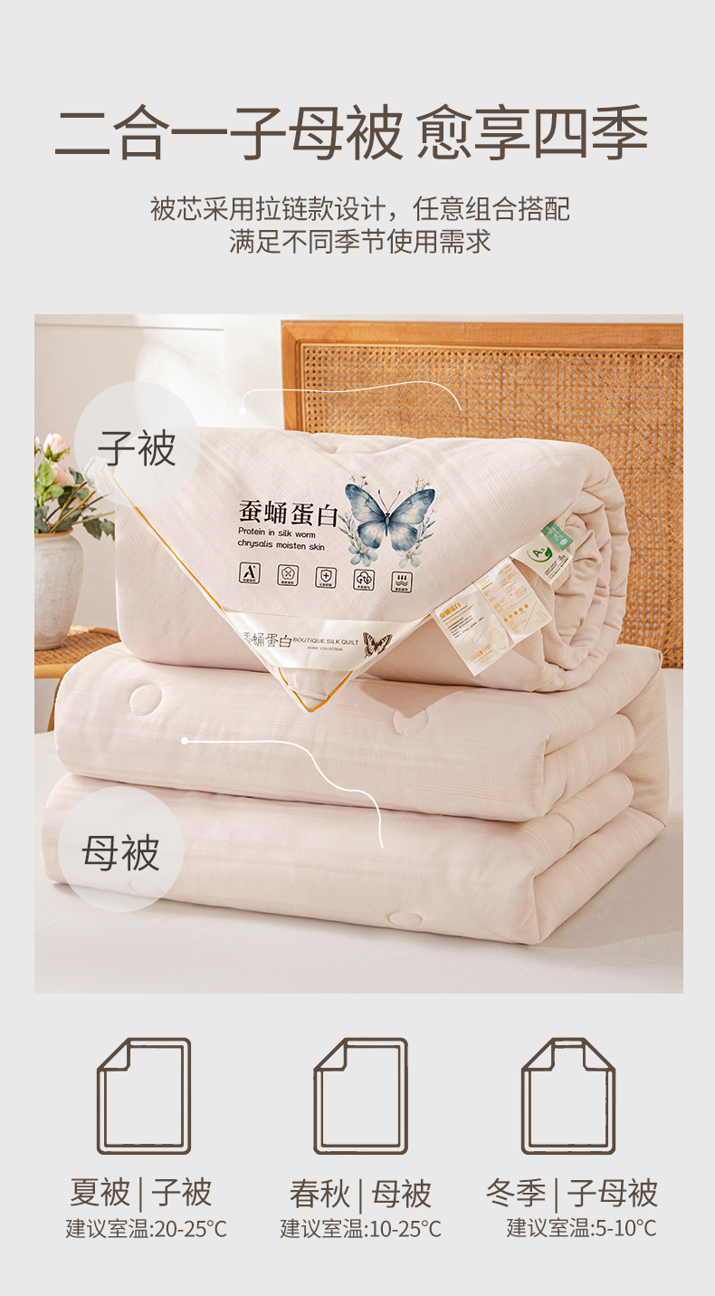 • 91家纺网 家纺一手货源 找家纺 (总)小禹仔家纺 2026新款二合一拉链款蚕蛹蛋白子母被冬被春秋被夏被被子被芯加厚棉被-蝶梦系列,蝴蝶-米白,蝴蝶-粉,蝴蝶-灰