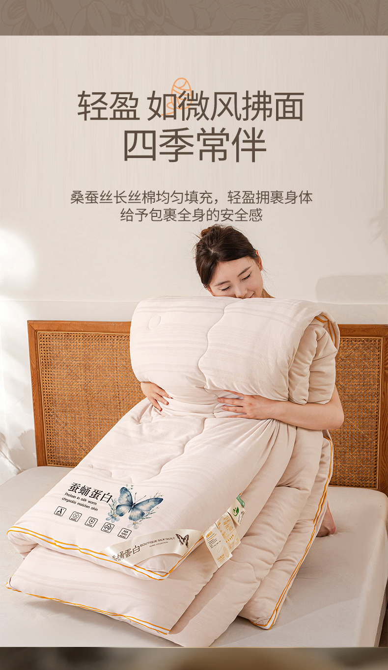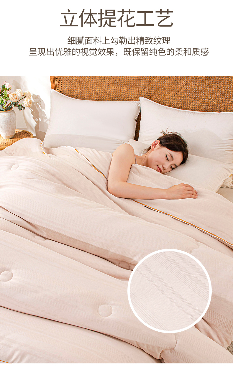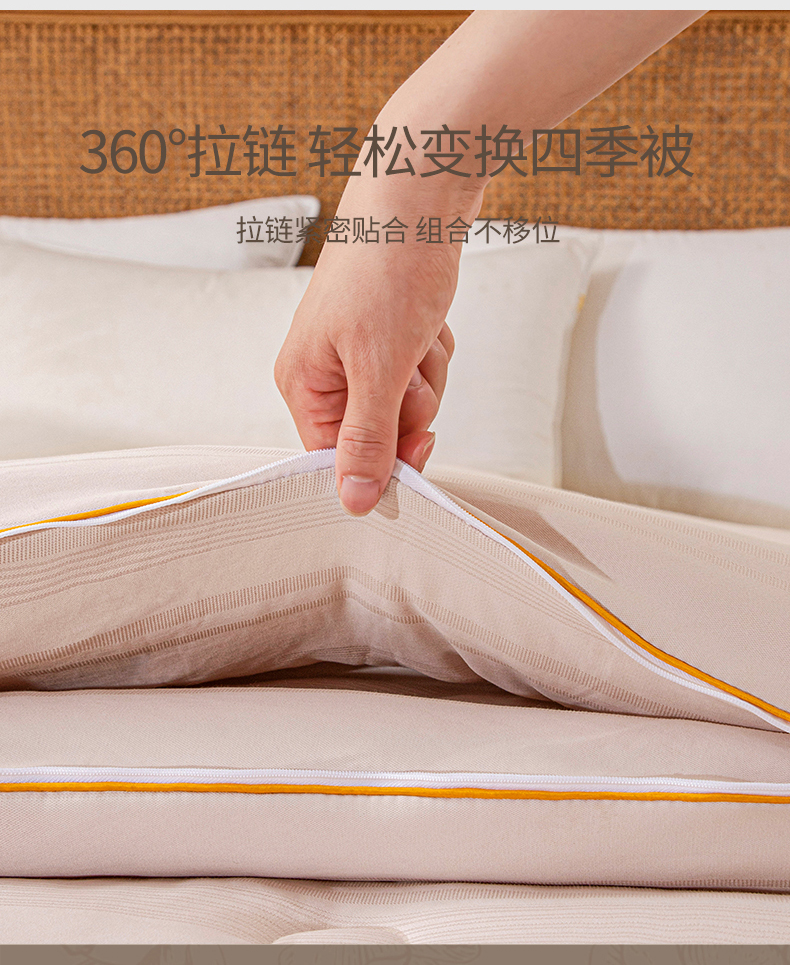 • 91家纺网 家纺一手货源 找家纺 小禹仔家纺 2026新款全棉提花拉链款蚕蛹蛋白子母被冬被春秋被夏被被子被芯加厚棉被-缎条系列 缎条-浅咖