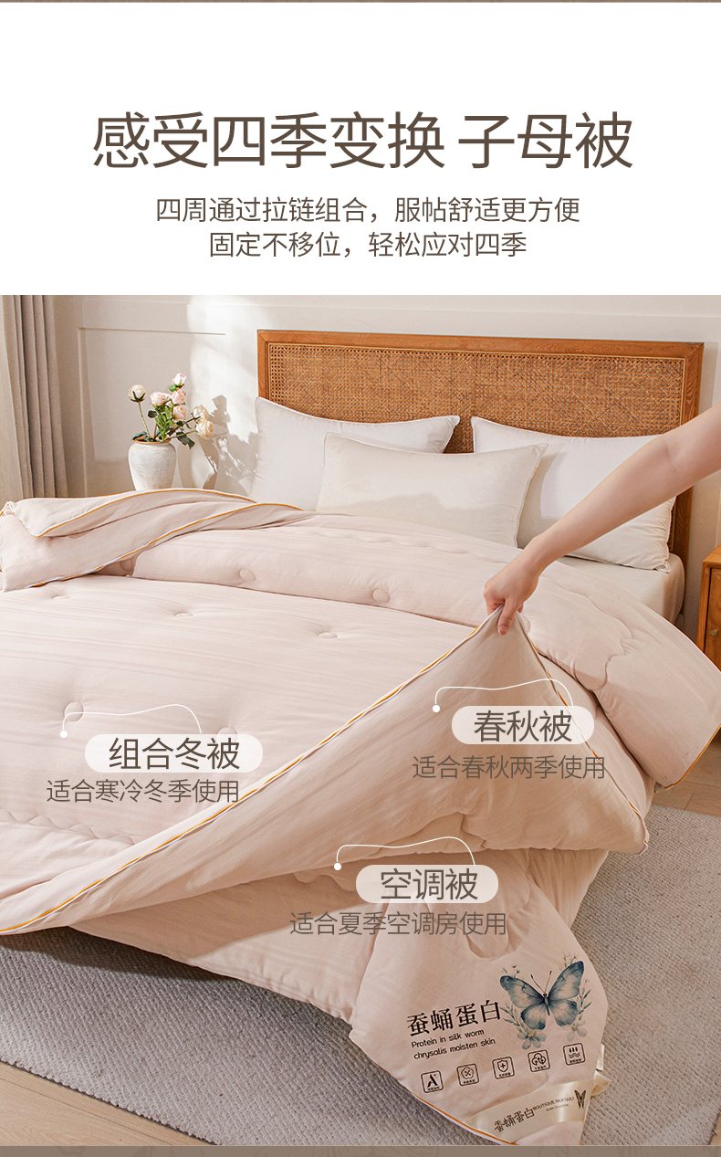 当前位置: 91家纺网 > 商品网购 > 被子 > 冬被 > 小禹仔家纺 2026新款全棉提花拉链款蚕蛹蛋白子母被冬被春秋被夏被被子被芯加厚棉被-缎条系列 缎条-浅咖