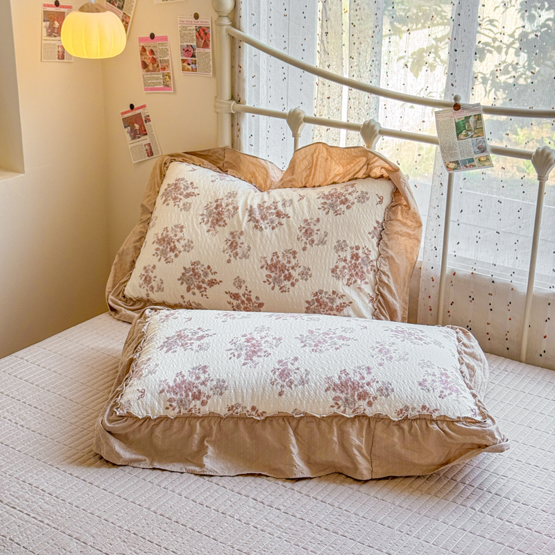 梵希雅 2026新款泡芙纱纯棉蕾丝花边夏被四件套 花软雾,花软雾