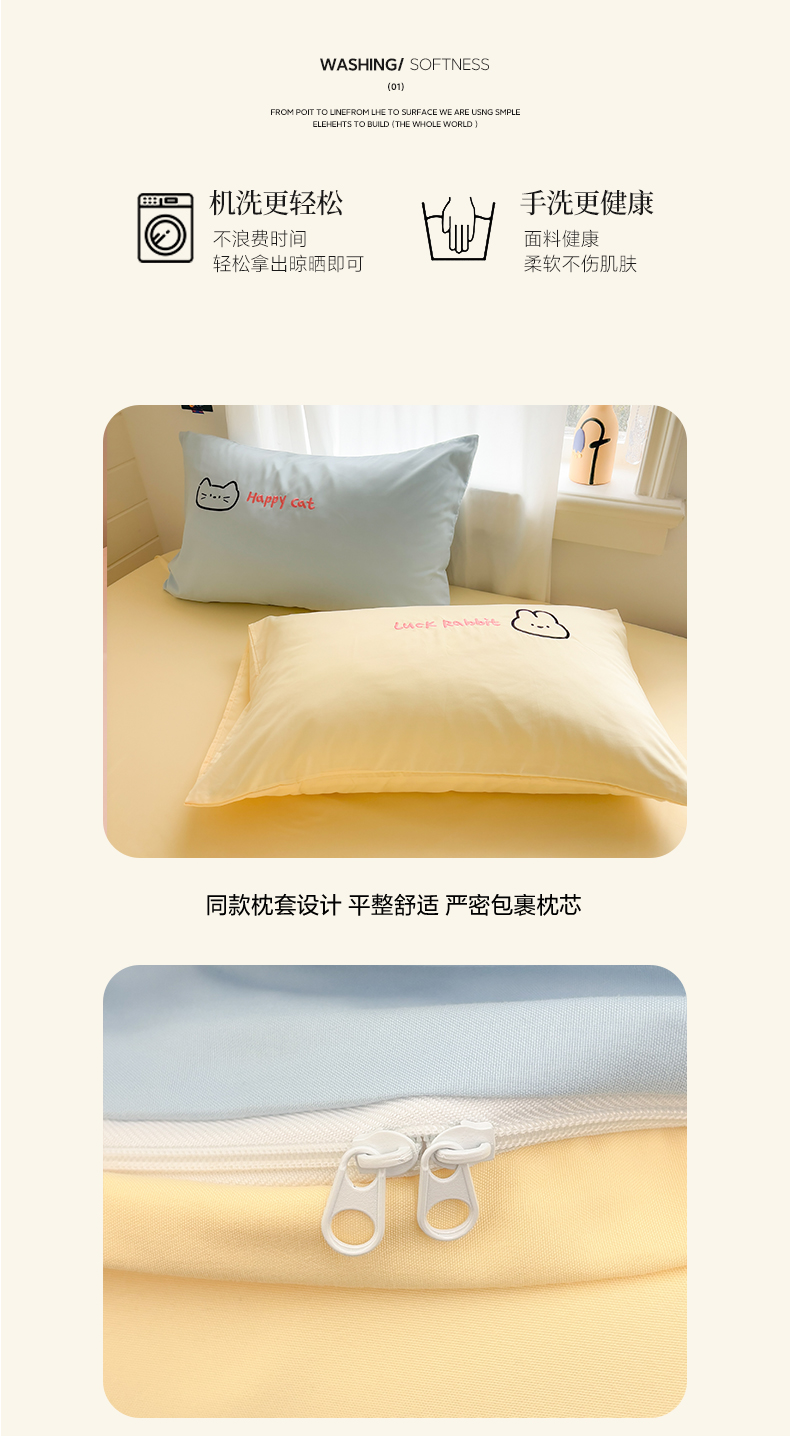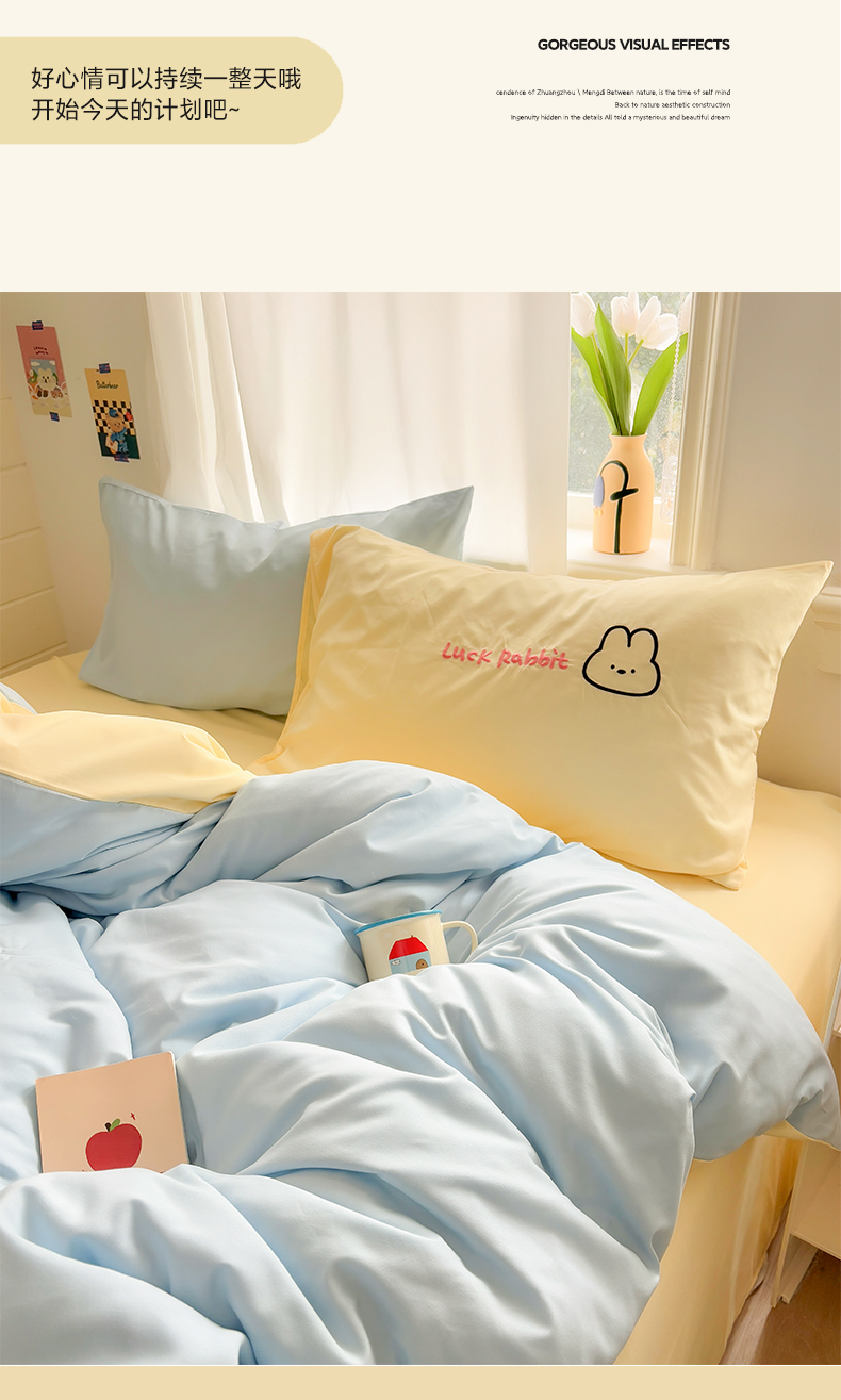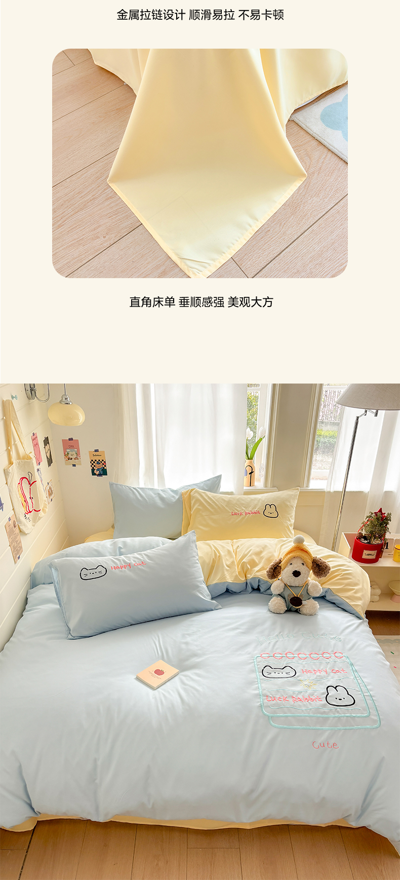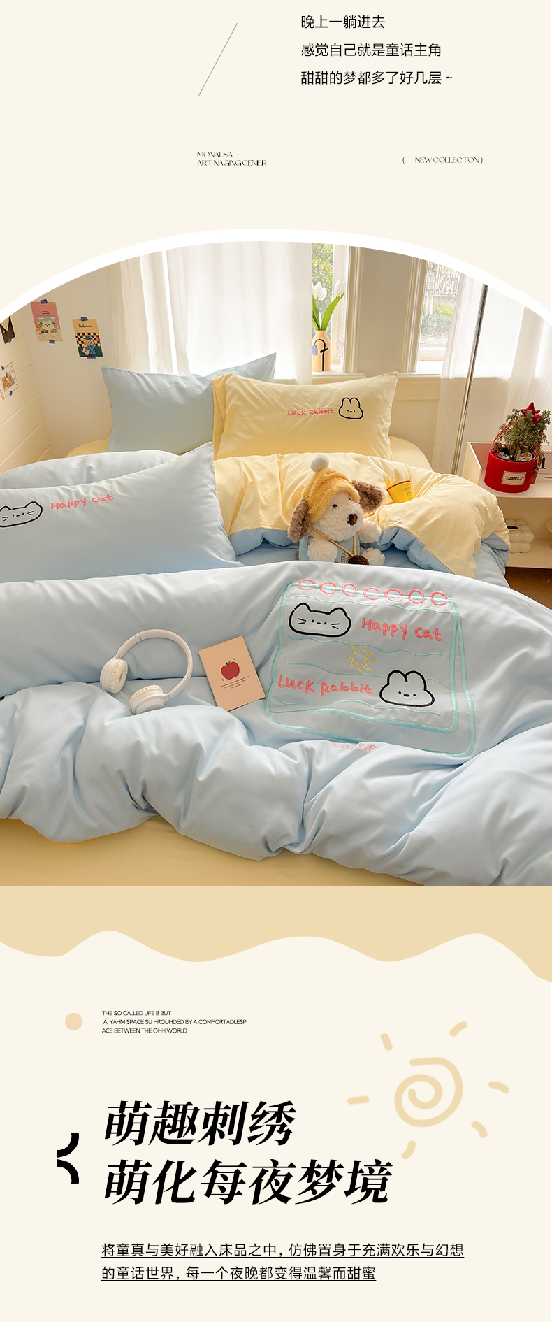 当前位置: 91家纺网 > 商品网购 > 床品套件 > 四件套 > 其它四件套 > 我心家纺 2026新款卡通刺绣四件套 猫兔日记-蓝黄
