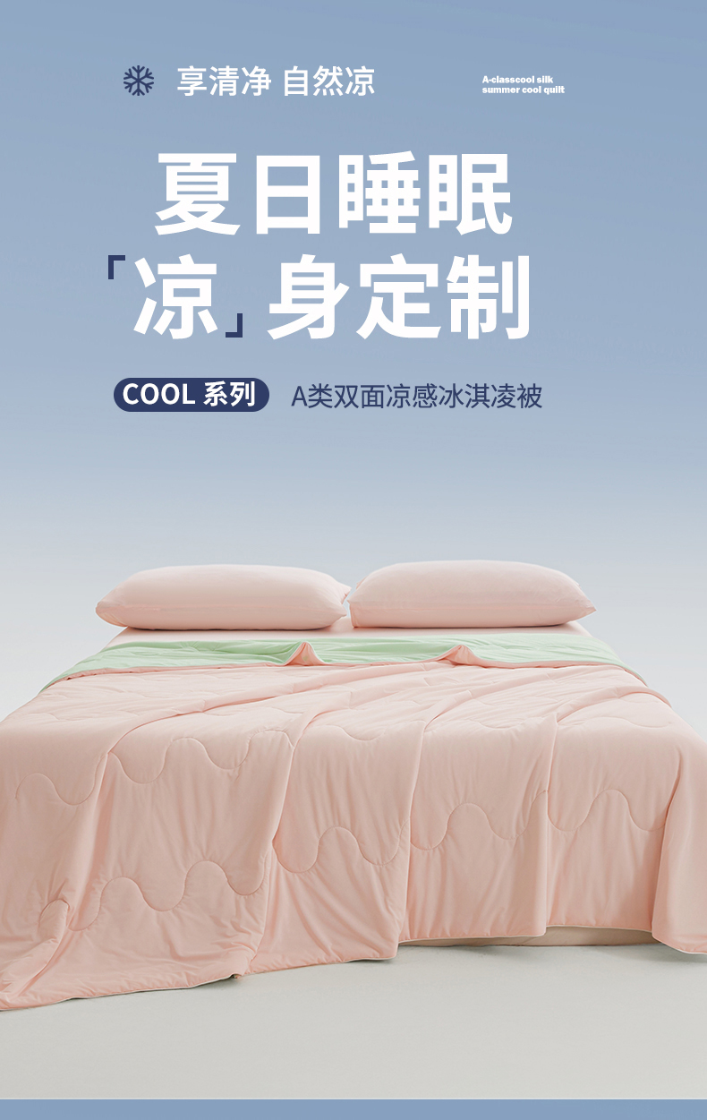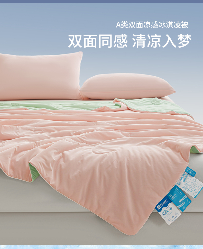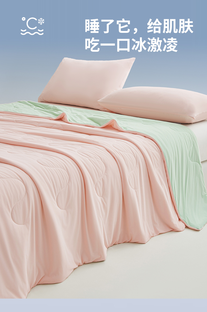 小禹仔家纺 2026新款氨纶凉感印花夏被 冰感粉拼薄荷绿