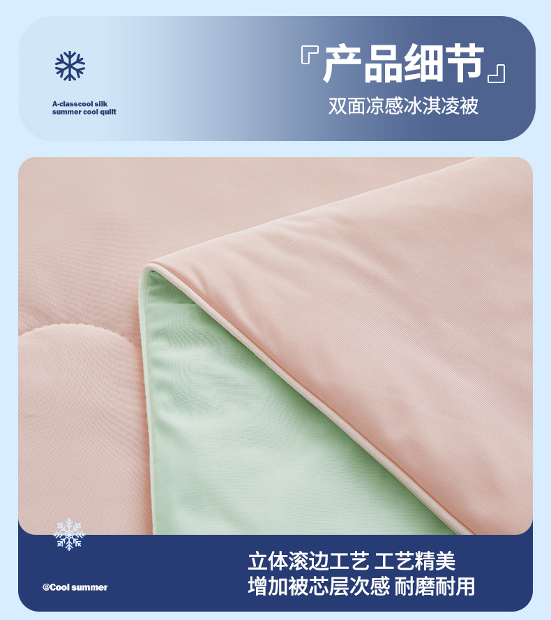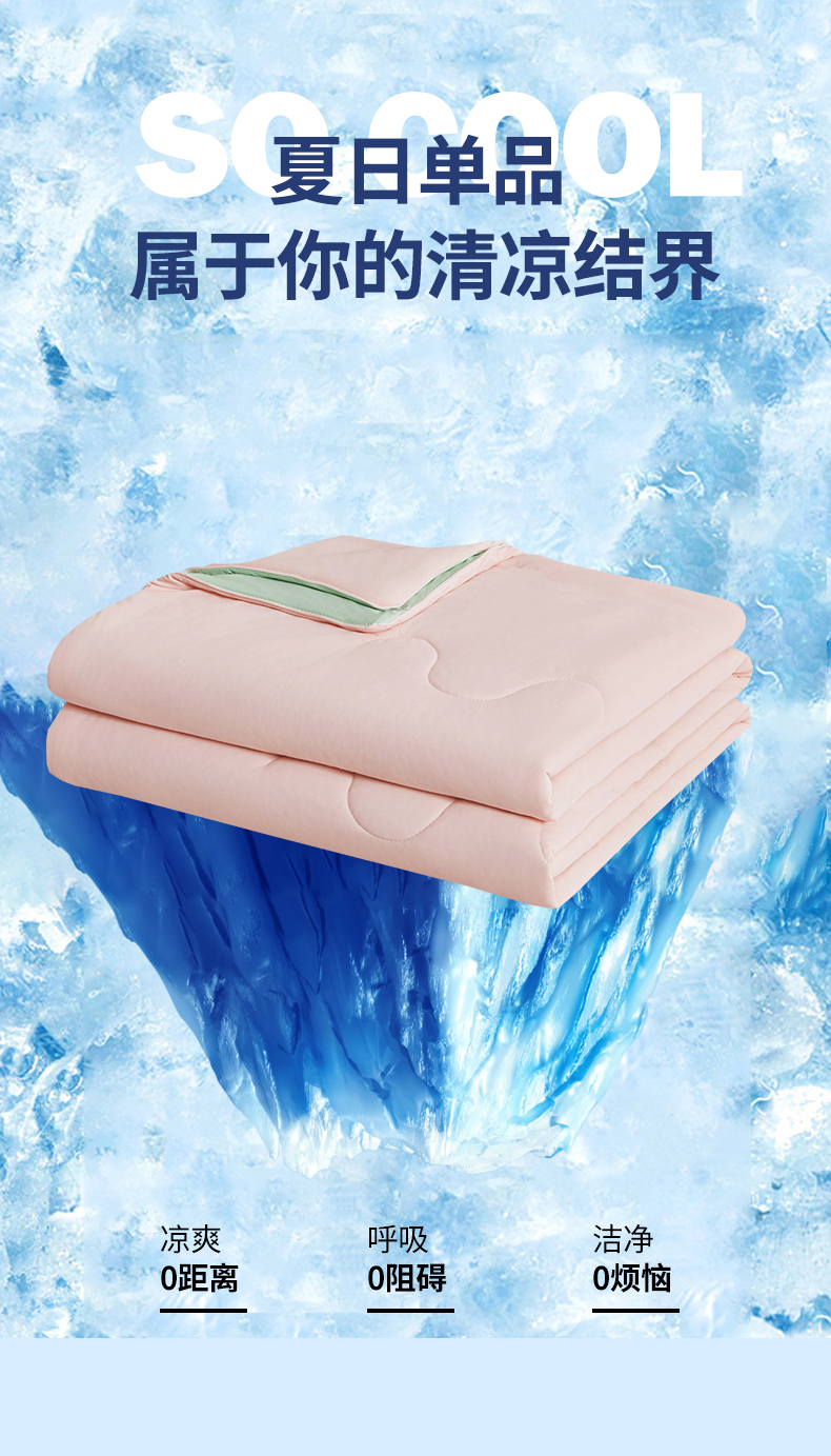 商品名称:小禹仔家纺 2026新款氨纶凉感印花夏被 冰感粉拼薄荷绿