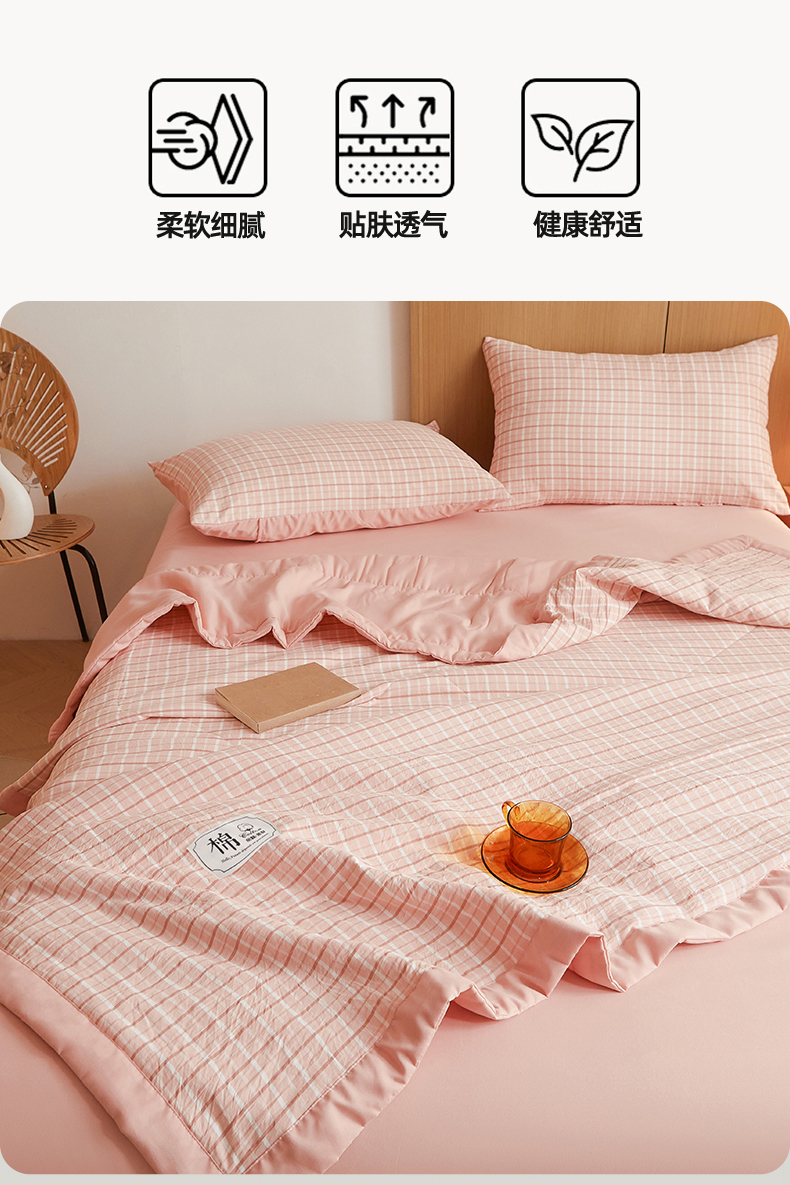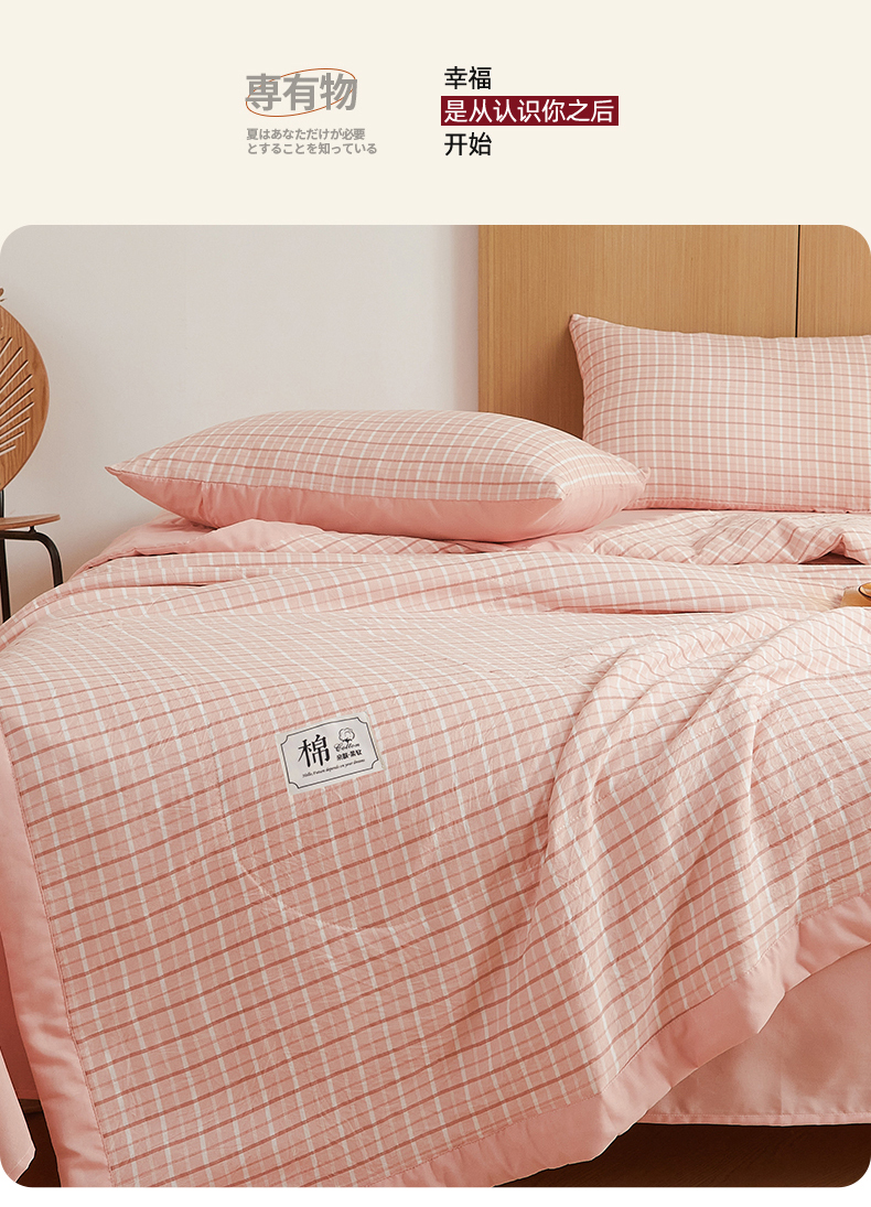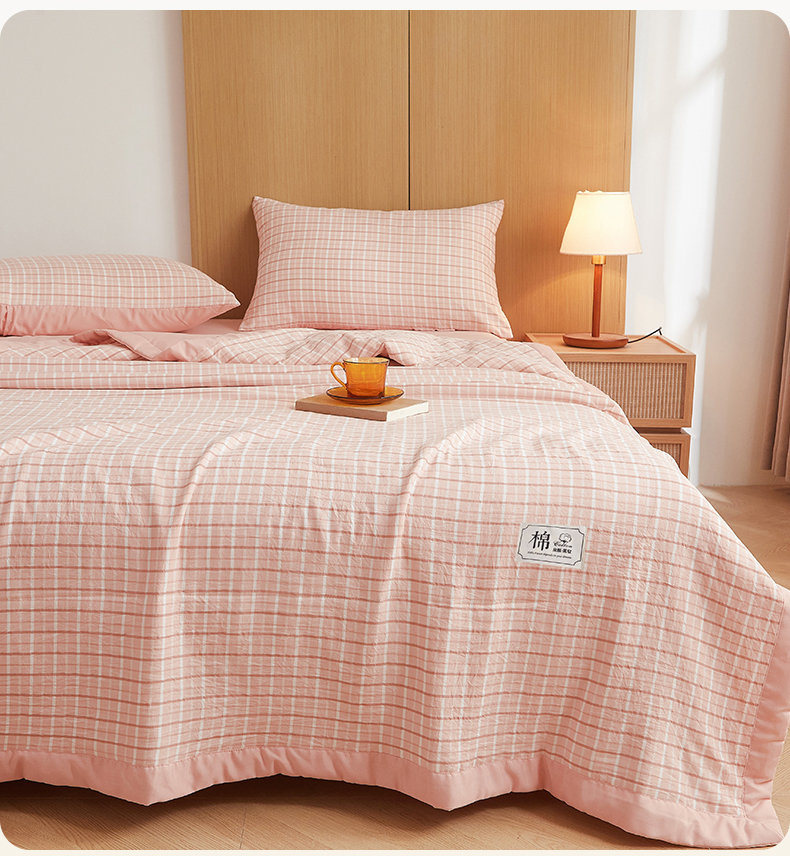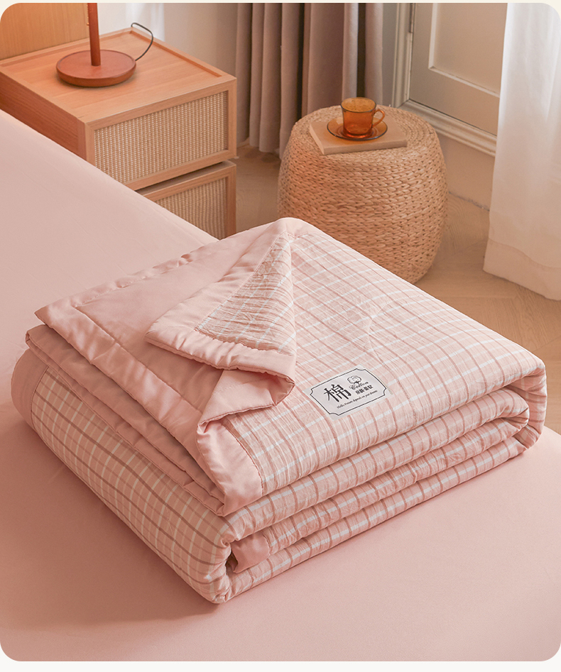 被子 > 夏被 > 梵蒂莎 【地板价】2026新品水洗棉新疆棉花夏被无印风夏被格子空调被被子被芯(需要买家秀,加微信) 若兮-粉