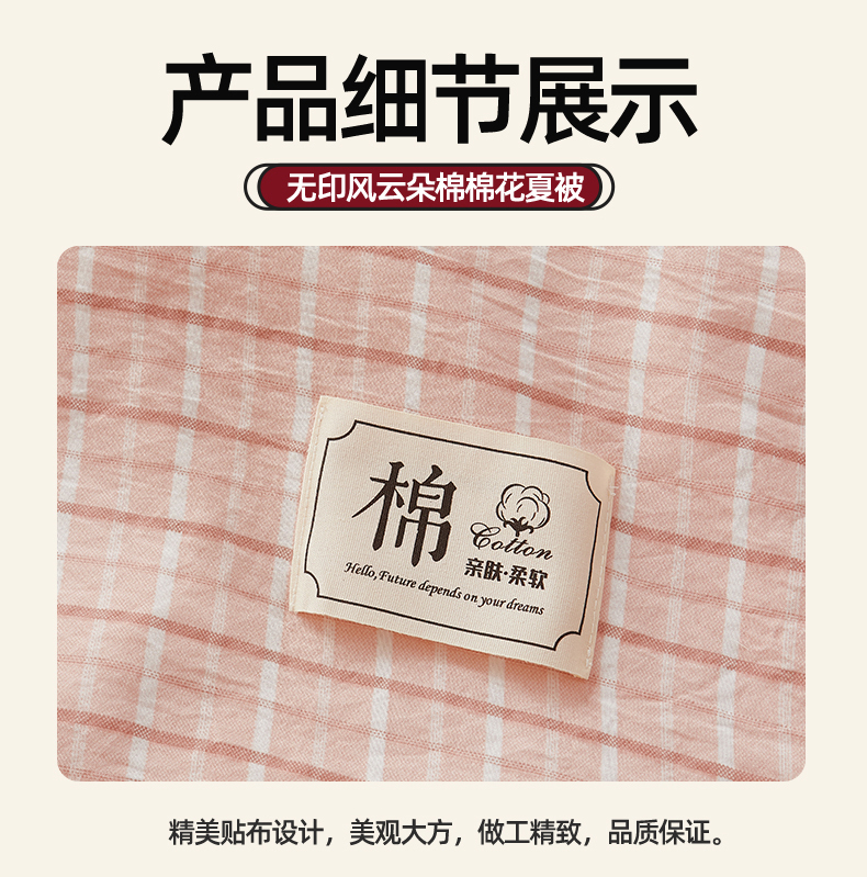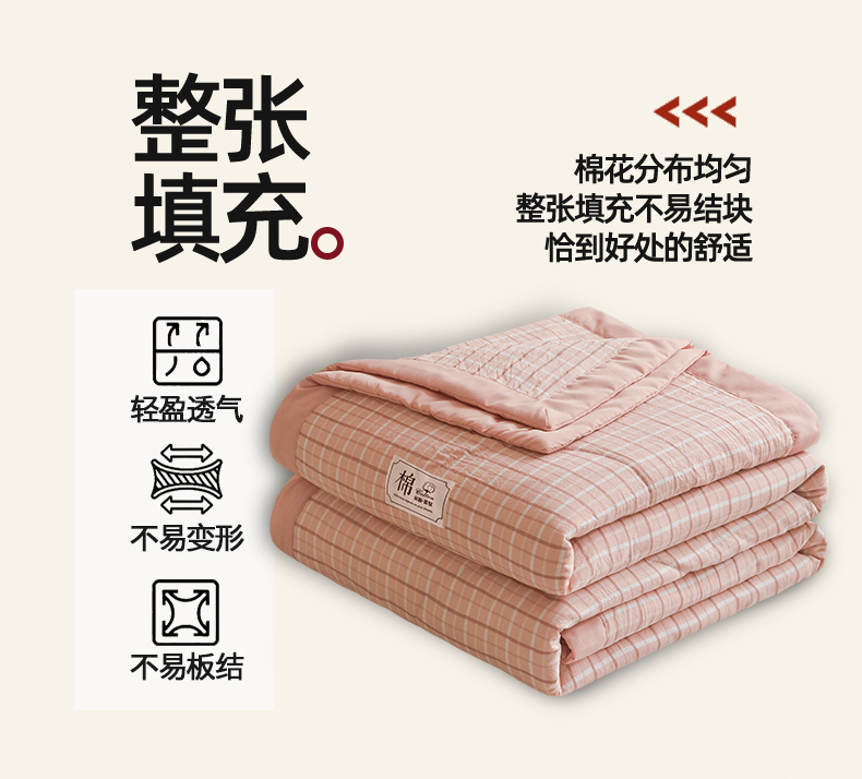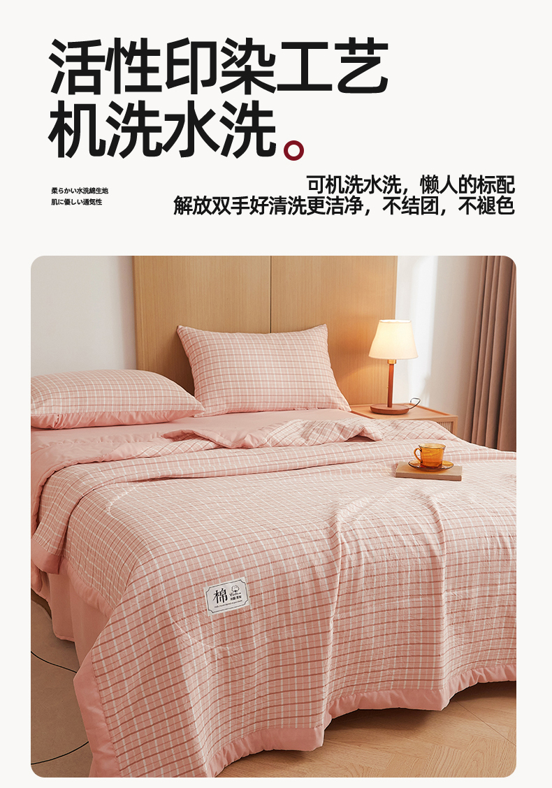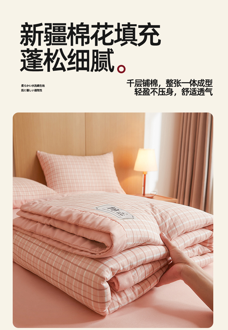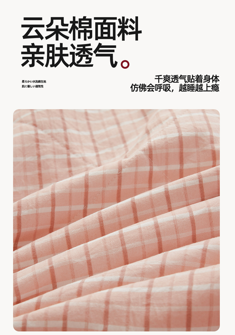 被子 > 夏被 > 梵蒂莎 【地板价】2026新品水洗棉新疆棉花夏被无印风夏被格子空调被被子被芯(需要买家秀,加微信) 若兮-粉
