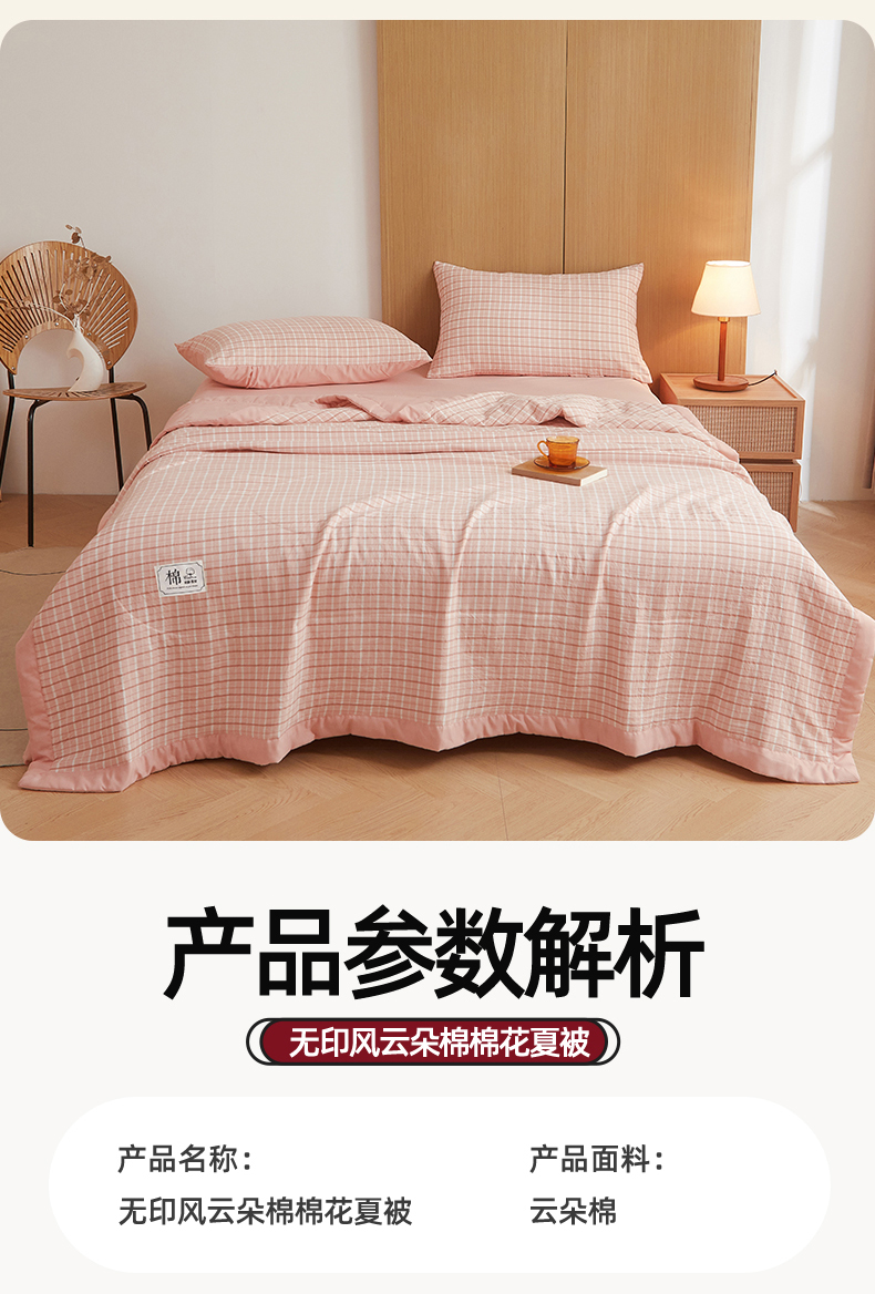商品名称:梵蒂莎 【地板价】2026新品水洗棉新疆棉花夏被无印风夏被格子空调被被子被芯(需要买家秀,加微信) 若兮-粉