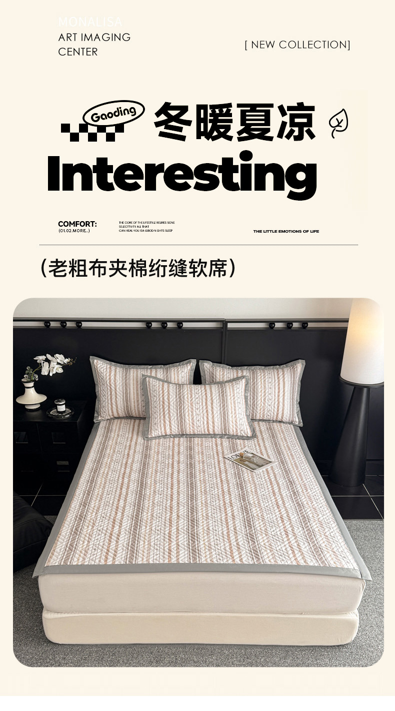 • 91家纺网 家纺一手货源 找家纺 慕尚家纺 2026新款百百棉全棉纯棉床席老粗布凉席席子 浅亦