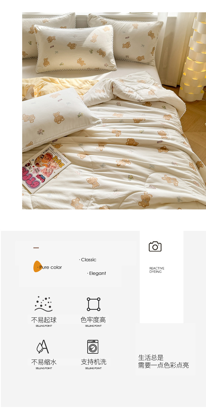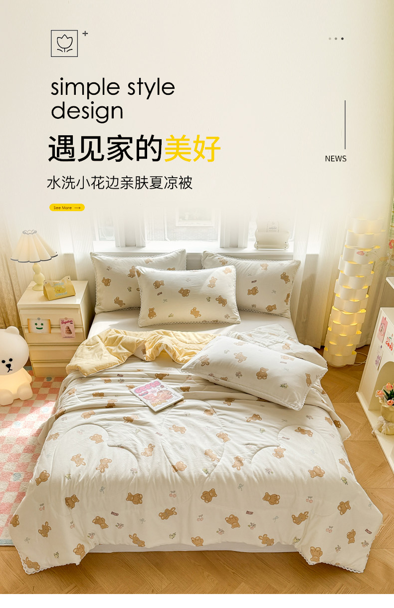 商品名称:慕尚家纺 2026新款水洗棉可爱小清新夏被空调被夏凉被 宝贝小熊