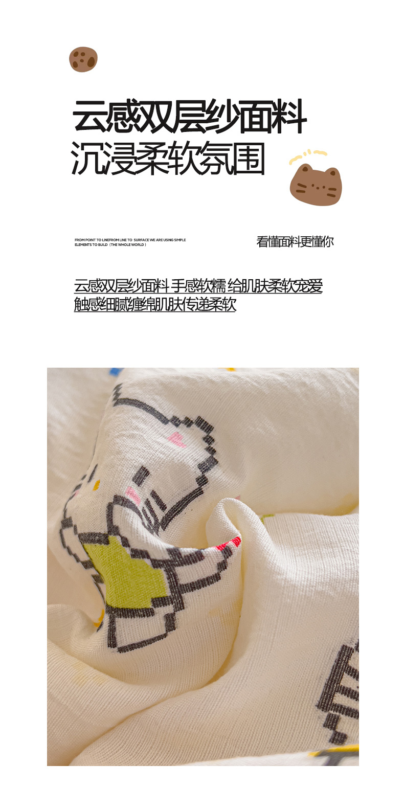 几禾 2026新款云感双层纱7A抗菌夏被四件套系列-栀夏系列 栀夏-像素小猫