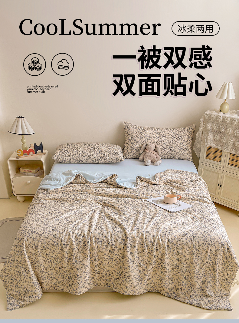 • 91家纺网 家纺一手货源 找家纺 小禹仔家纺 2026新款A类印花双层纱凉感大豆夏被 江南