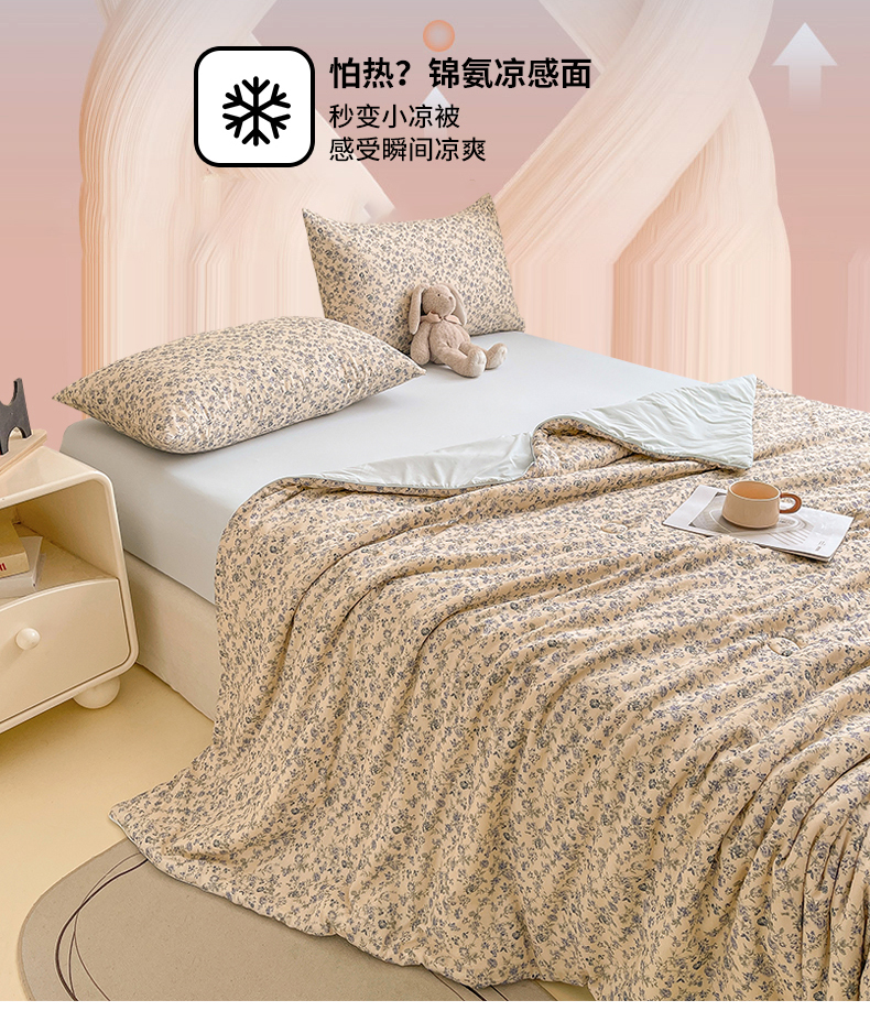 (总)小禹仔家纺 2026新款氨纶凉感印花夏被,夏瑶绿,半山花,风荷举,花陌语,曼莎,木绵芙,沐野,晴川,樱絮,櫻绯雨,薄荷绿,冰感粉,冰感粉拼薄荷绿,藏青拼天空蓝,米色,天空蓝,天空蓝拼米色,烟云灰,烟云灰拼浅灰,优雅紫