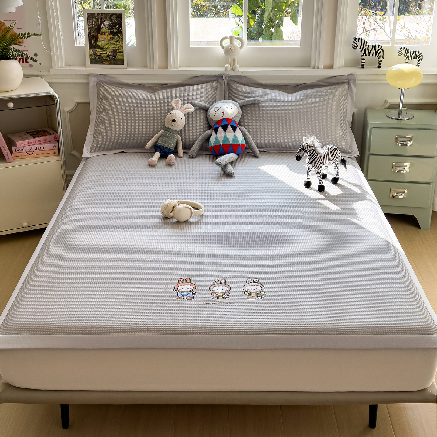 (总)几禾 2026新款华夫格刺绣款凉席-床席款,懒懒小憩-床席款,可可喵派-床席款,奶冻喵-果绿-床席款,奶冻喵-蓝-床席款,趣味腊肠狗-床席款,躺躺岛-灰-床席款,躺躺岛-咖啡棕-床席款,兔免星人-床席款,组合图