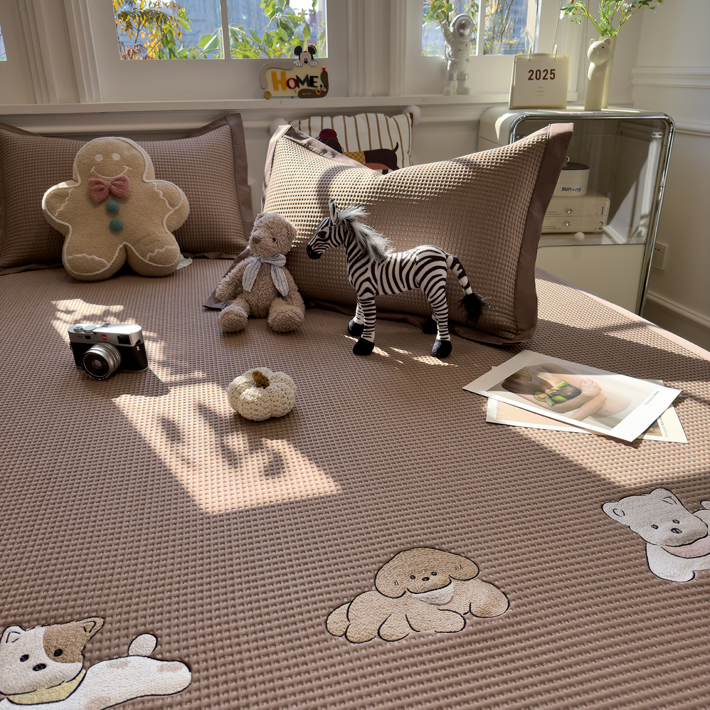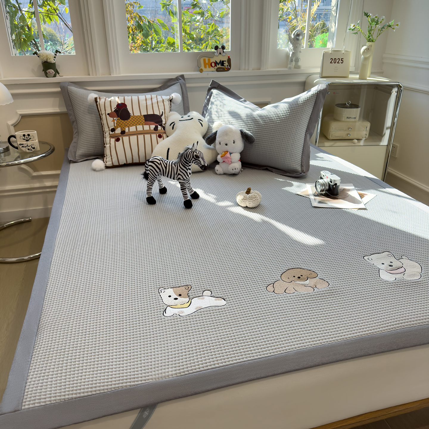 • 91家纺网 家纺一手货源 找家纺 几禾 2026新款华夫格刺绣款凉席-床席款 趣味腊肠狗-床席款