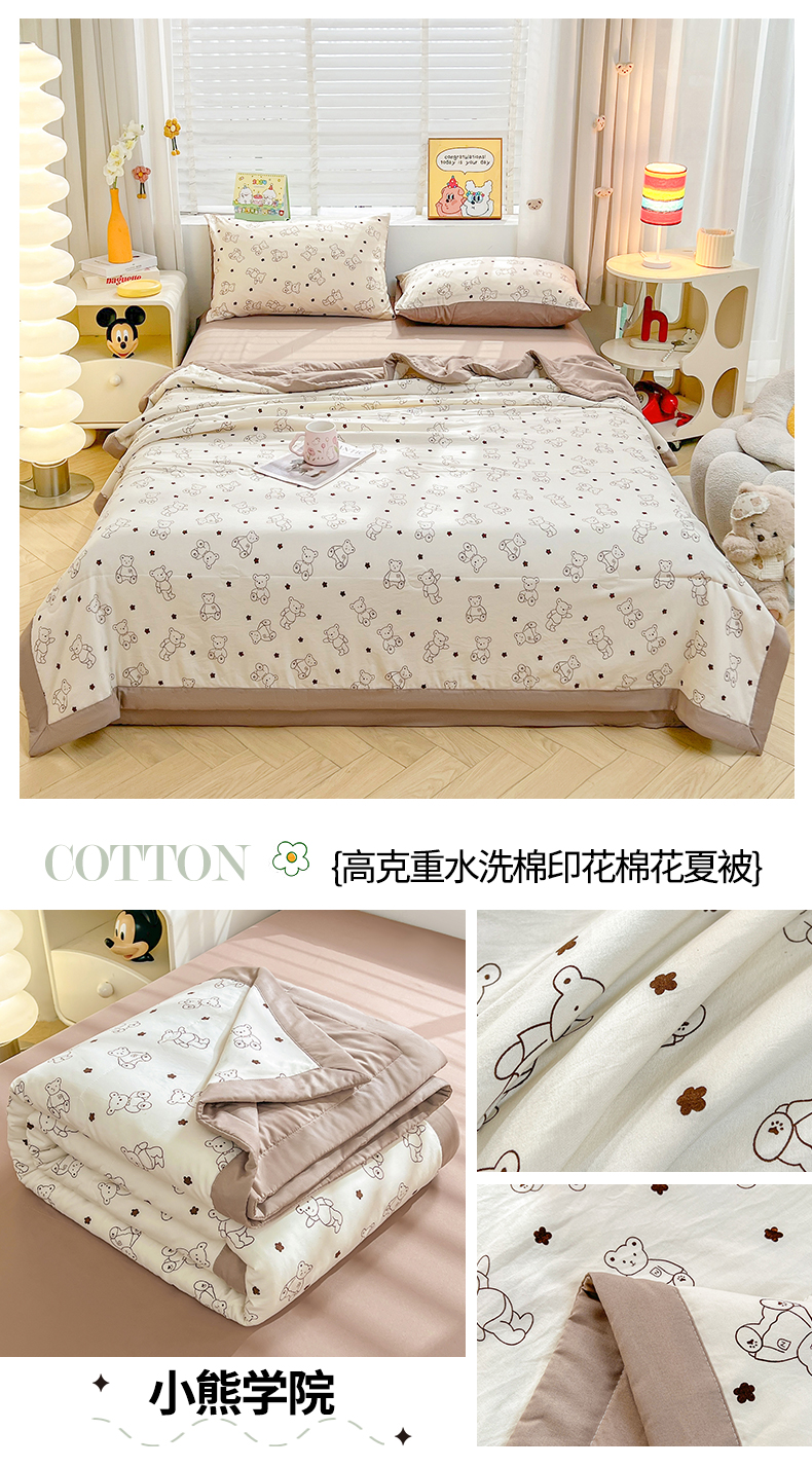 犇牛仓储供应链 2026新款高克重水洗棉印花棉花夏被夏凉被空调被 小熊学院