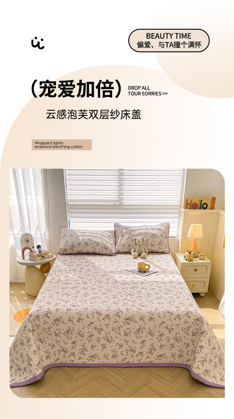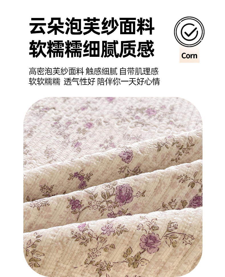 当前位置: 91家纺网 > 商品网购 > 床上用品 > 床盖 > 梵朴 2026新款A类泡芙双层纱云感邹邹纱床盖三件套 花季紫